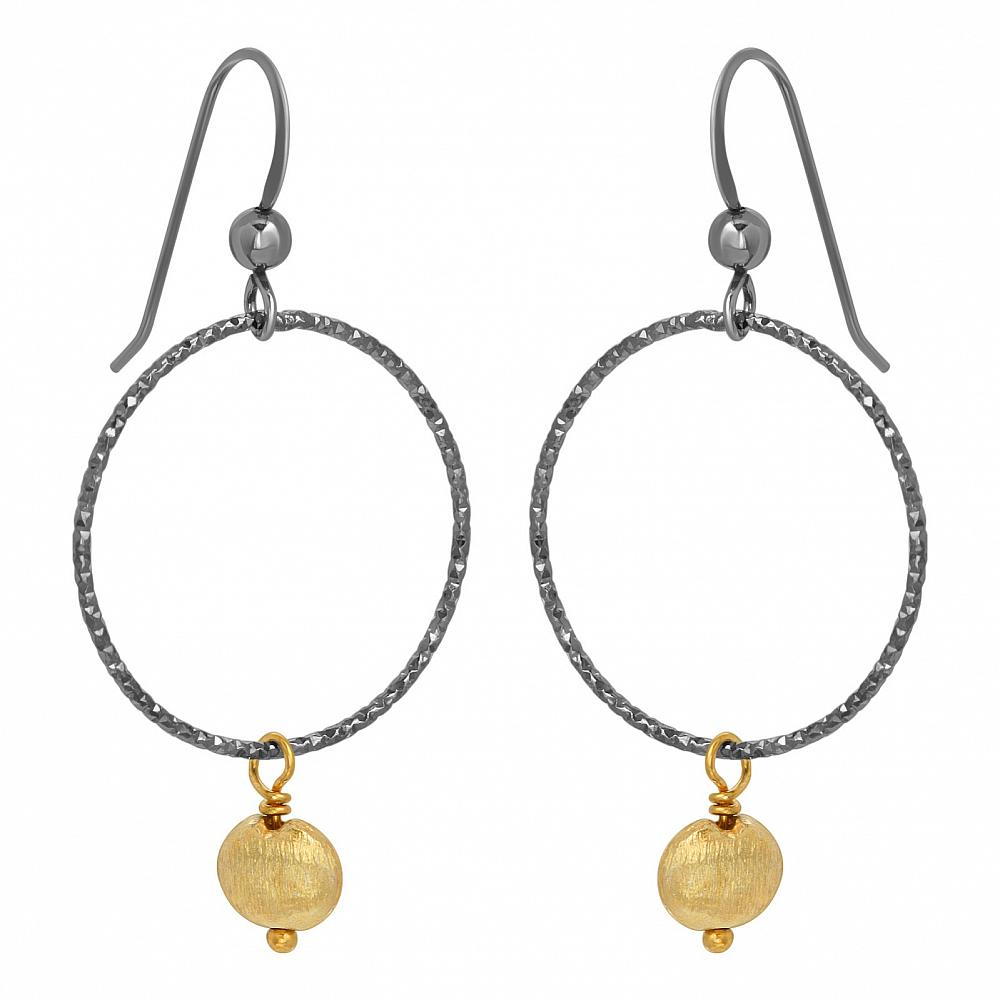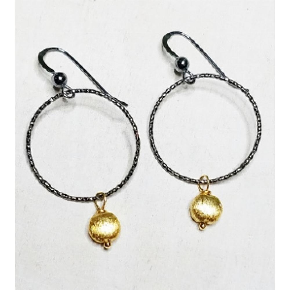 These trendy and classic look of two-tone oxidized sterling silver diamond cut hoop with vermeil gold drop is perfect for every occasion.