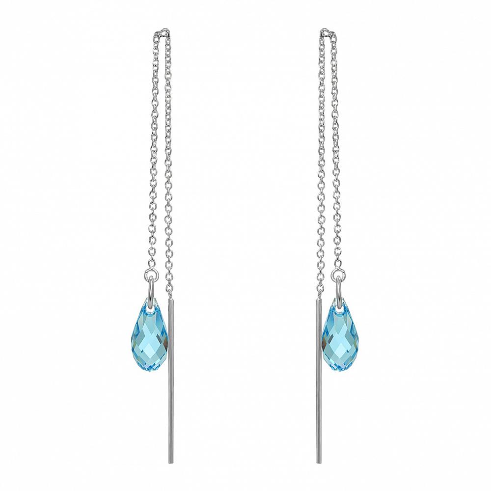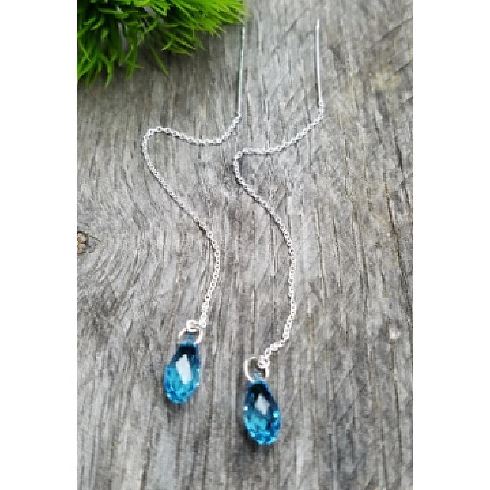 Crystal Briolette Threader Earrings -  Crystals Elements Aqua Blue Crystal Briolette Threader Earrings -  Crystals Elements Aqua Blue