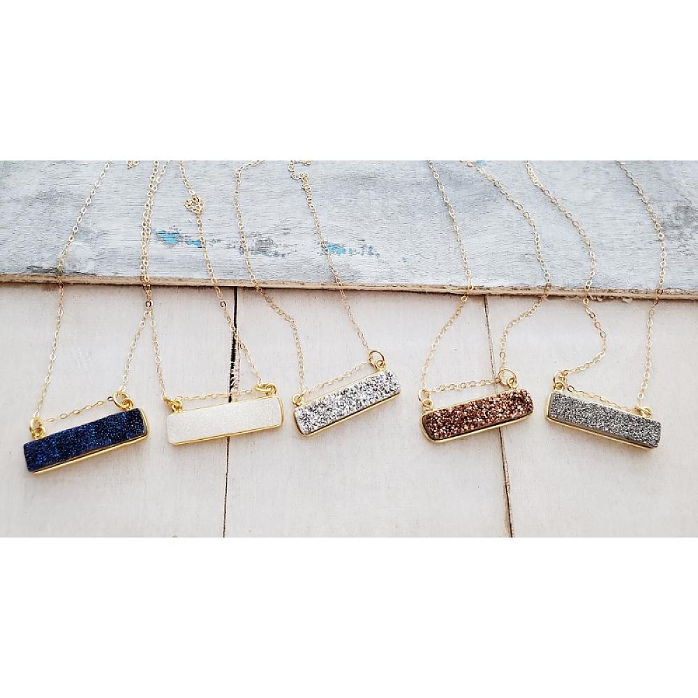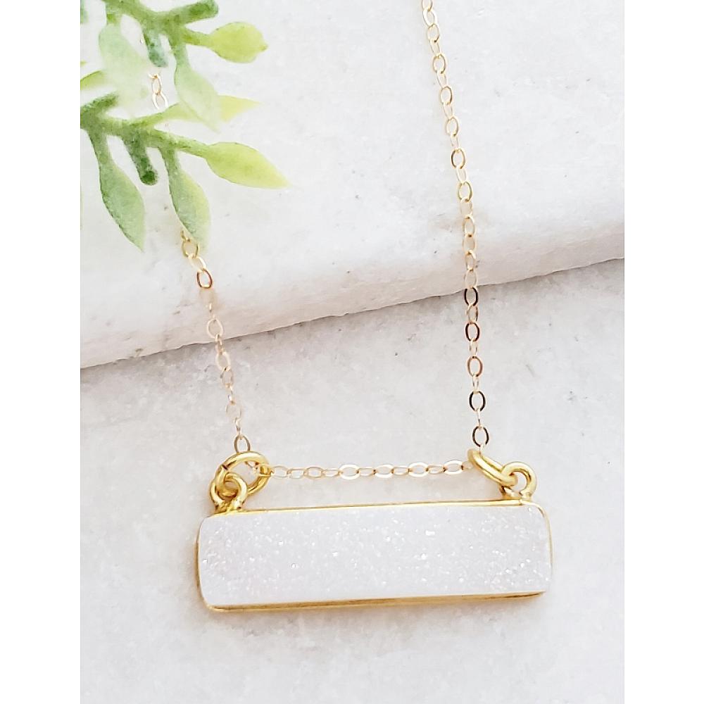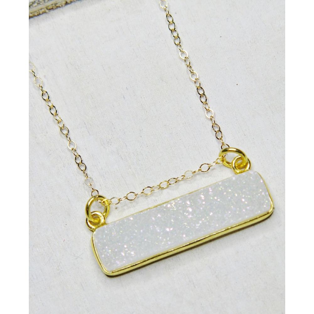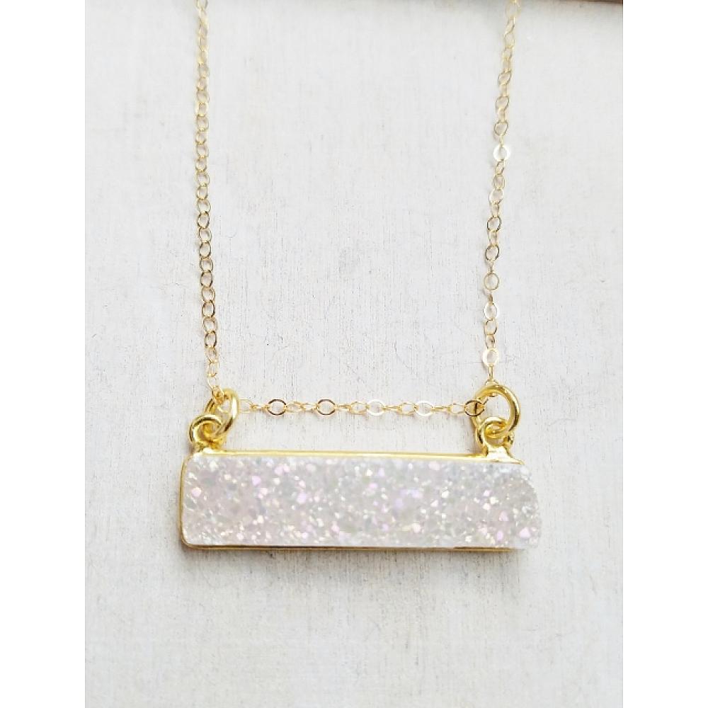 Gold Druzy Bar Sideways Necklace - Rainbow White Gold Druzy Bar Sideways Necklace - Rainbow White Gold Druzy Bar Sideways Necklace - Rainbow White Gold Druzy Bar Sideways Necklace - Rainbow White