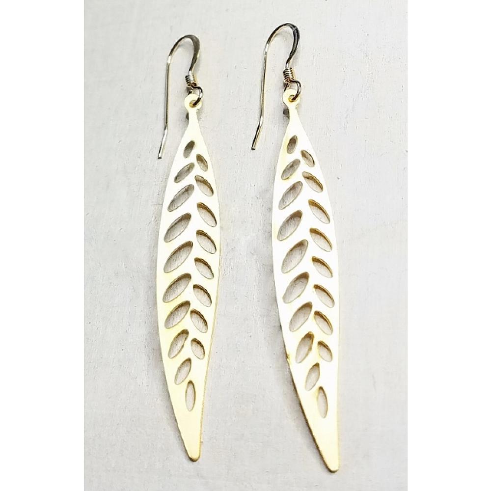 Gold Matte Long Fern Earrings