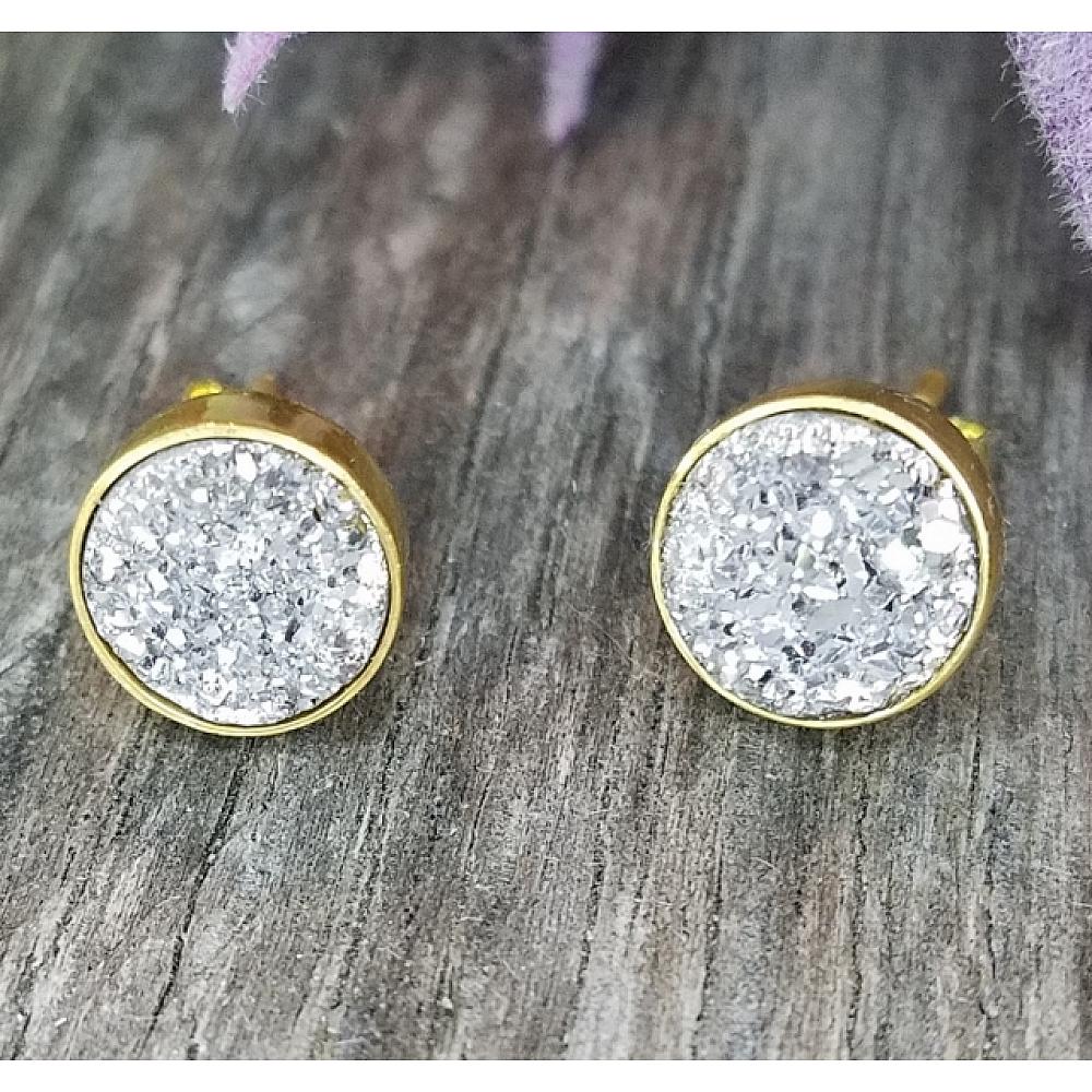 Gold Druzy Quartz Studs Earrings 9 mm - Silver Gold Druzy Quartz Studs Earrings 9 mm - Silver Gold Druzy Quartz Studs Earrings 9 mm - Silver Gold Druzy Quartz Studs Earrings 9 mm - Silver