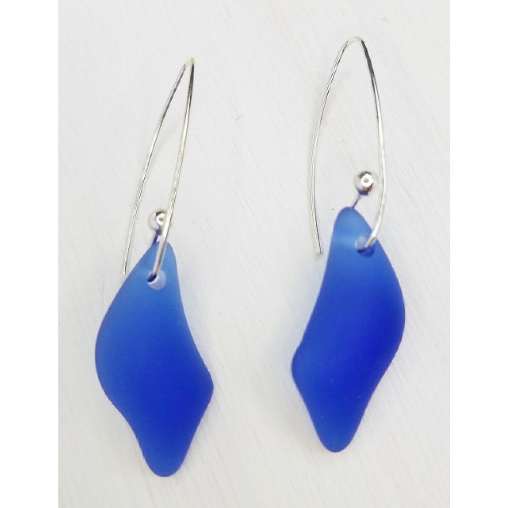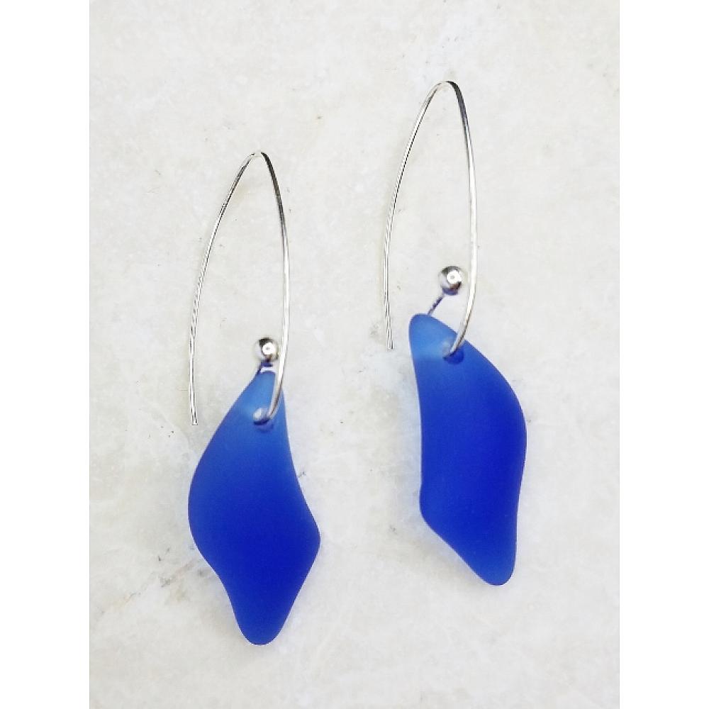 #1845-3 Eco Sea Glass Marquis Splash Earrings - Cobalt Blue