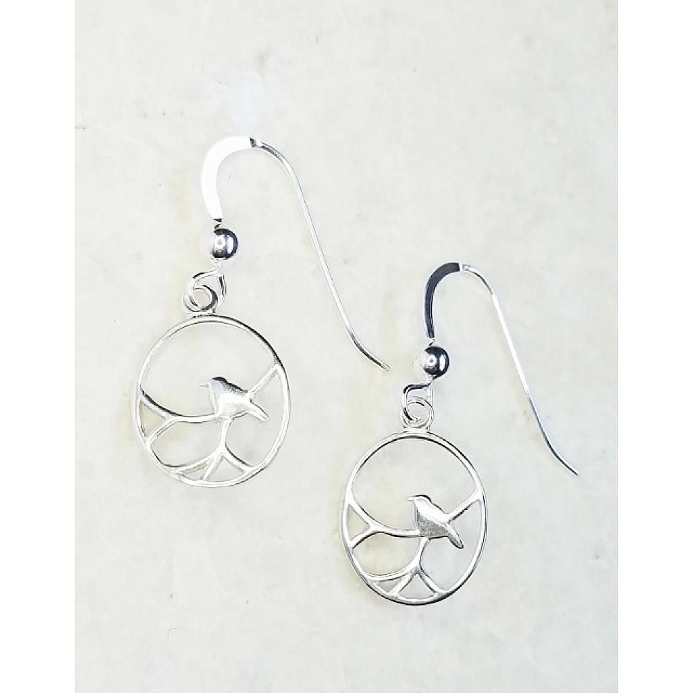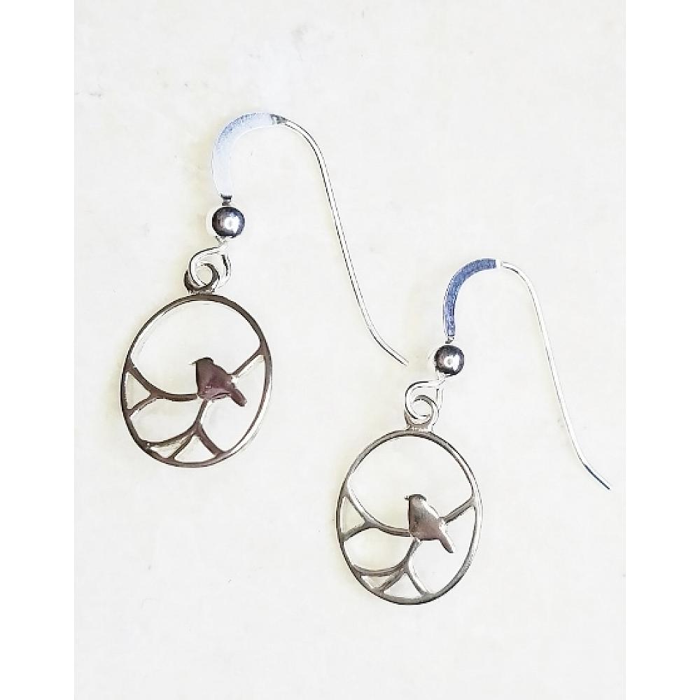 #1392 Silver Nightingale Bird Earrings