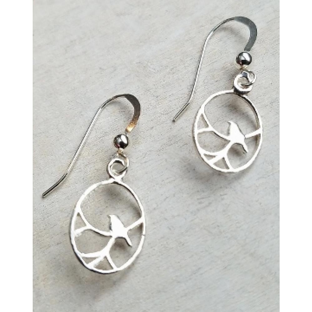 Remind yourself the sweet sound of the Nightingale birds with these lovely sterling silver cut-out oval design of a bird on a branch.