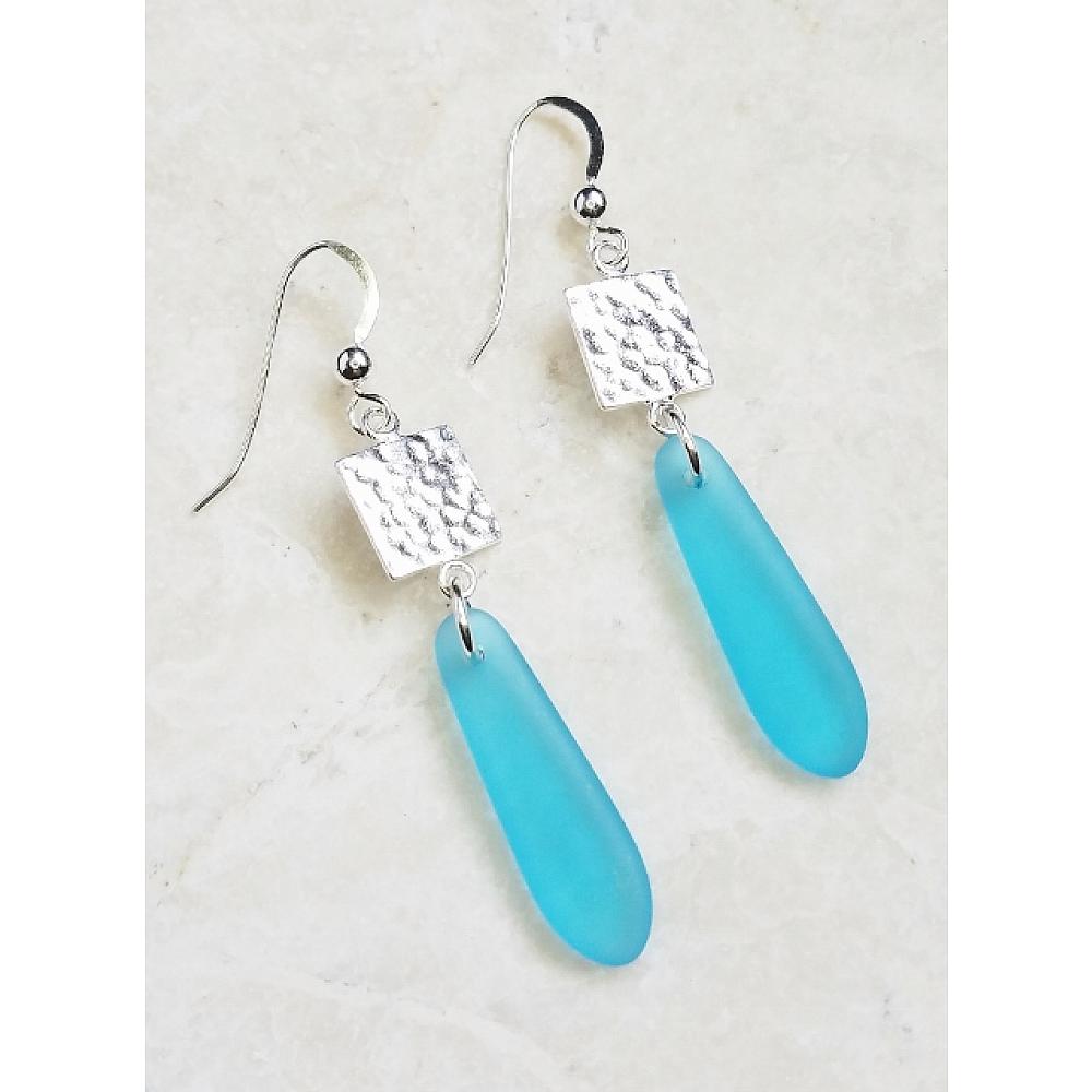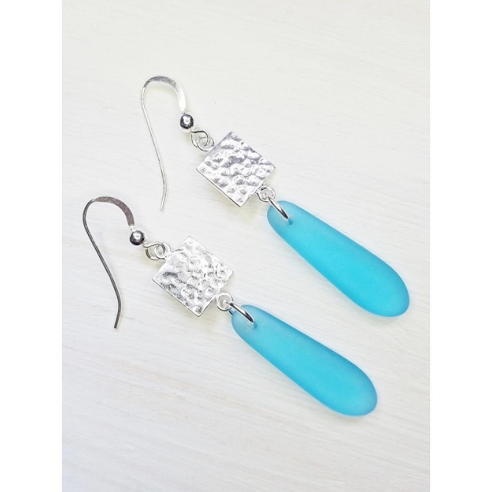 Eco Sea Glass Hammered Tile Earrings - Turquoise Eco Sea Glass Hammered Tile Earrings - Turquoise
