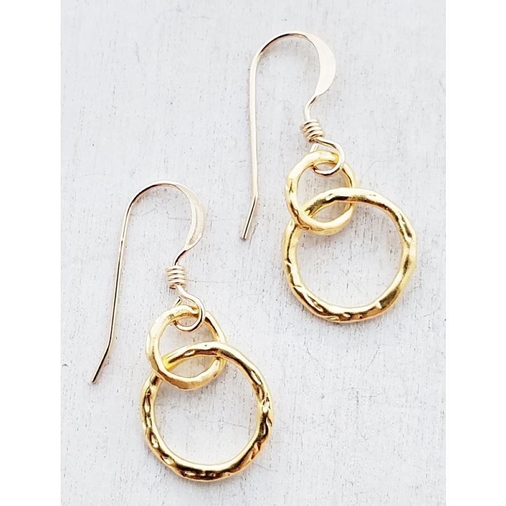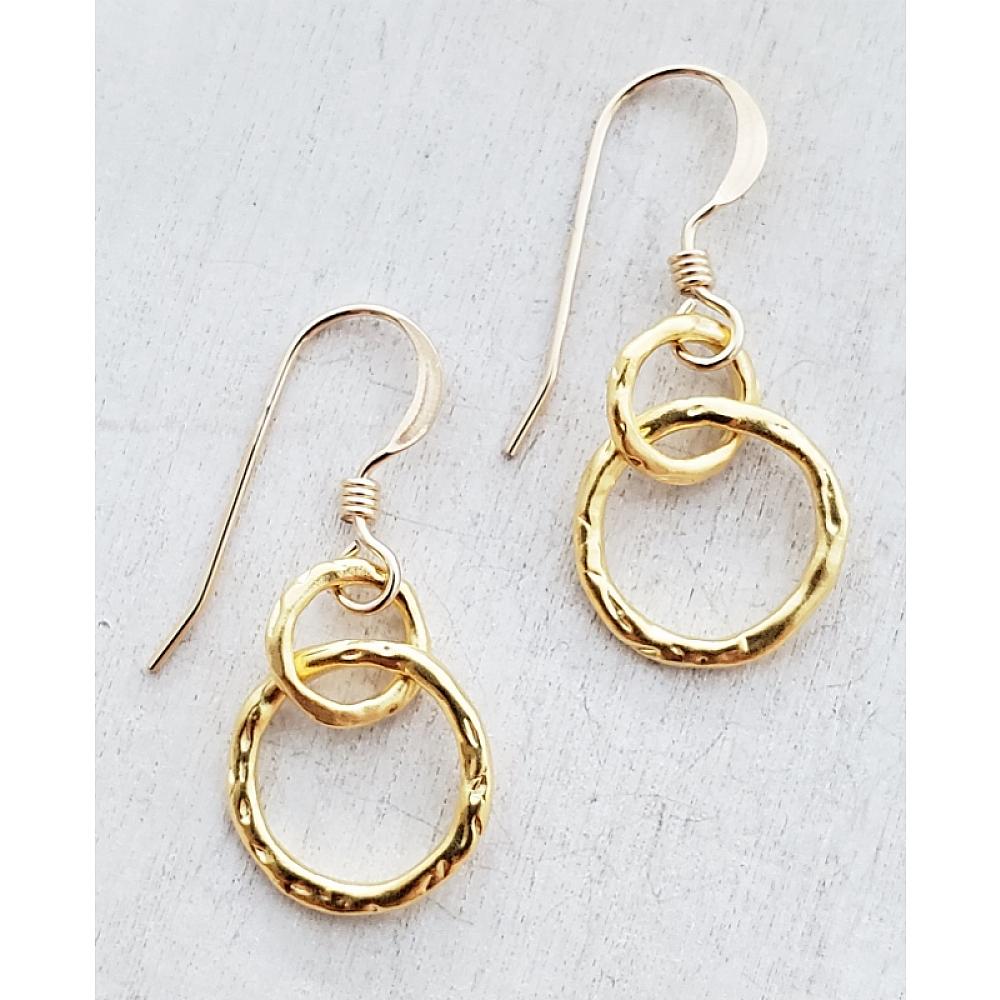 Modern Chic! These multiple interlocking textured tiny circles in gold come in variety of sizes to create a cascading flow. So sophisticated ringlet earrings yet so modern.