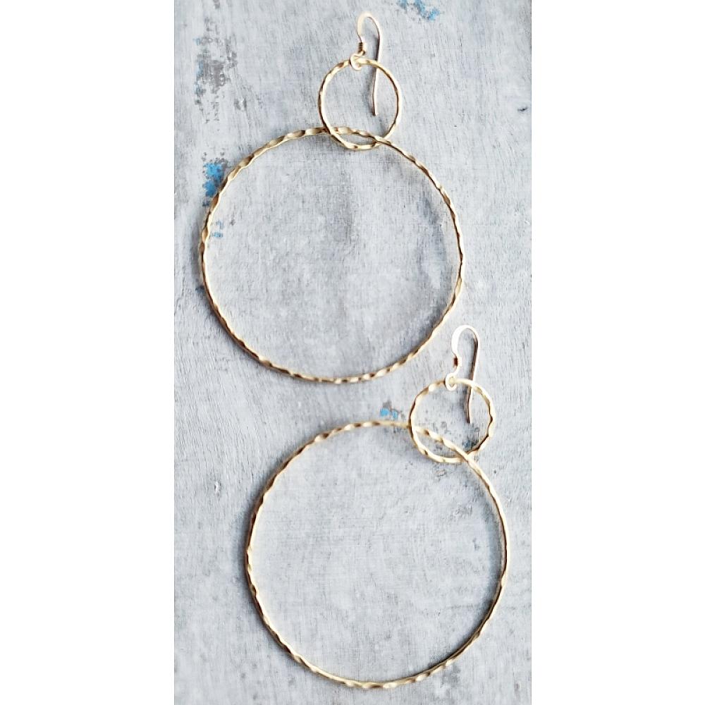 Modern Chic! These multiple interlocking textured large circles in matte gold comes in variety of sizes to create a cascading flow. So sophisticated ringlet earrings yet so modern.