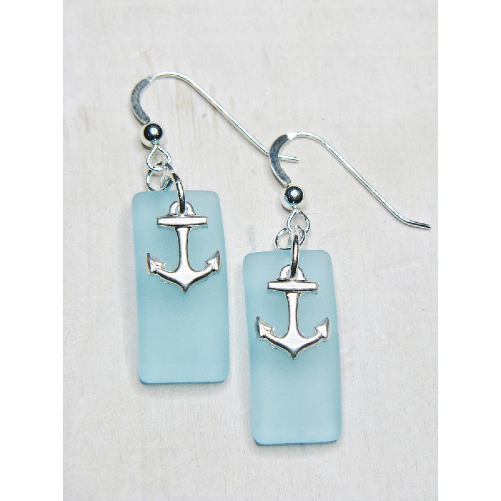 #1834-1 Eco Seas Glass Rec Curved Anchor Earrings - Turquoise