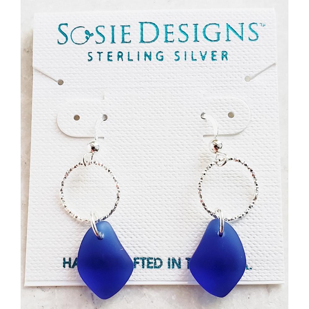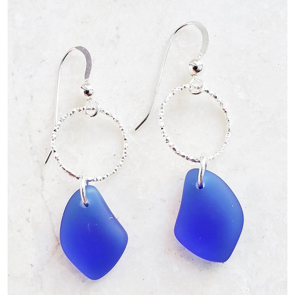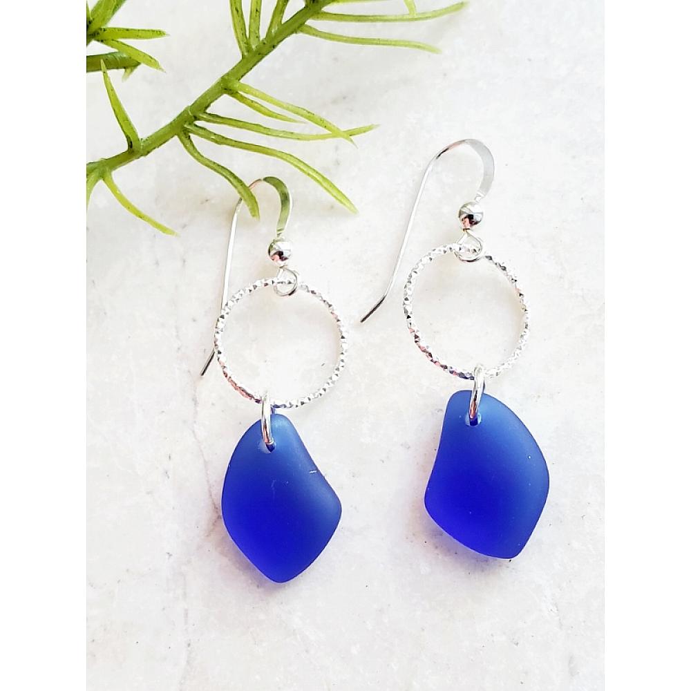 Silver Diamond Cut Eco Sea Glass Pebble Earrings - Cobalt Blue Silver Diamond Cut Eco Sea Glass Pebble Earrings - Cobalt Blue Silver Diamond Cut Eco Sea Glass Pebble Earrings - Cobalt Blue