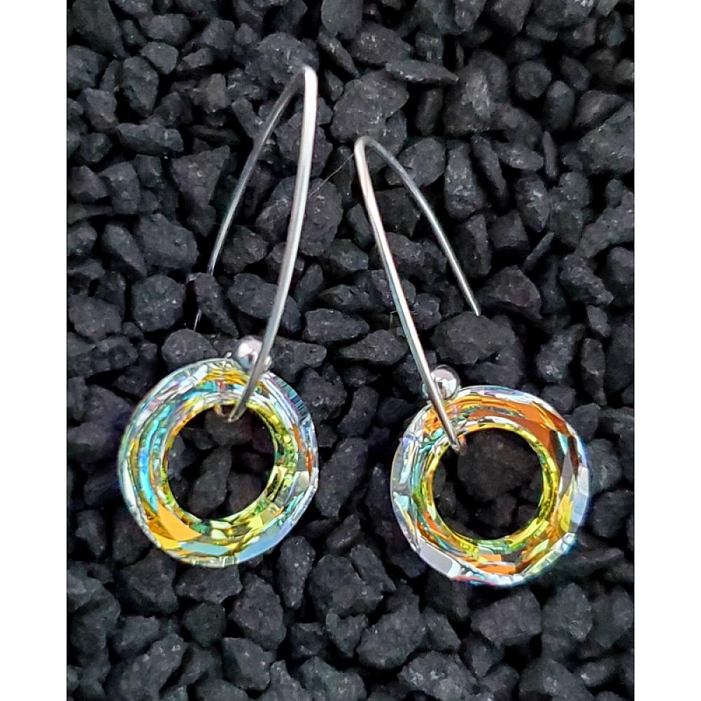 Our crystal earrings are made with the finest authentic European Crystal components, regarded as the highest quality, machine-cut and polished crystal in the world and known for having striking facets that gives our designs an incredible play of color.