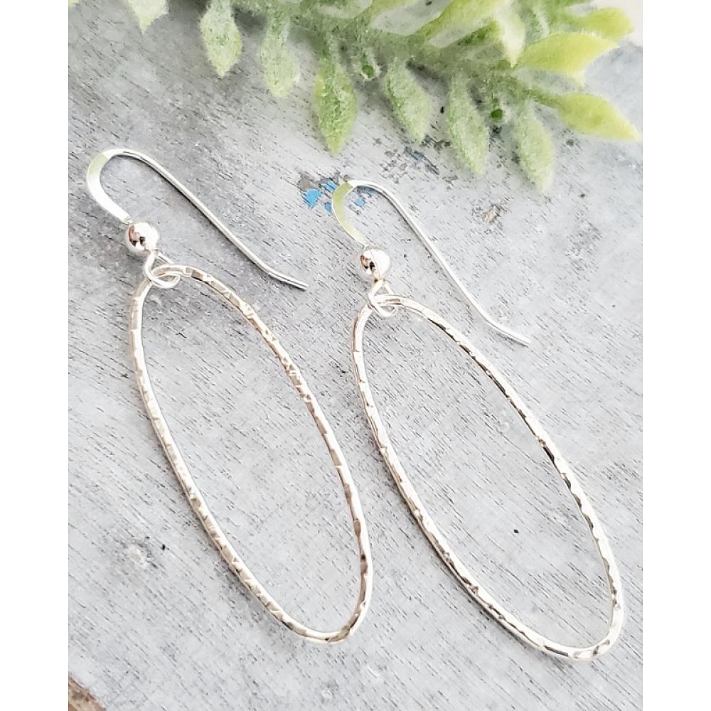 Simply Chic! These large .925 sterling silver hand-hammered oval earrings in diamond cut texture is always in style!