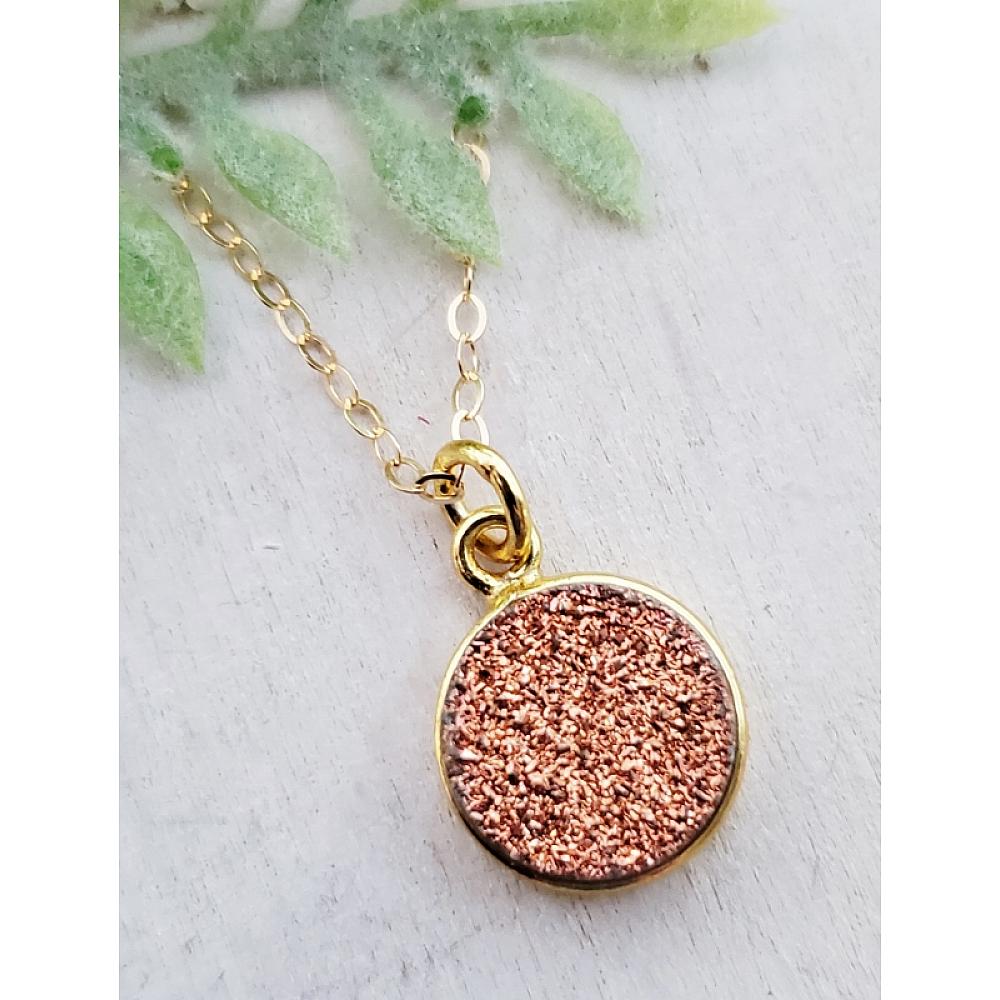 Gold Round Bezel Druzy Necklace - Copper Gold Round Bezel Druzy Necklace - Copper Gold Round Bezel Druzy Necklace - Copper