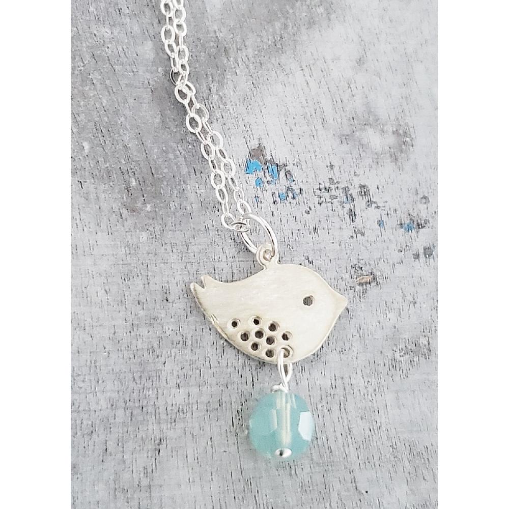 #2446 Silver Spotted Bird Pacific Opal Necklace