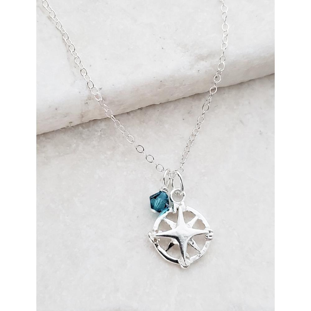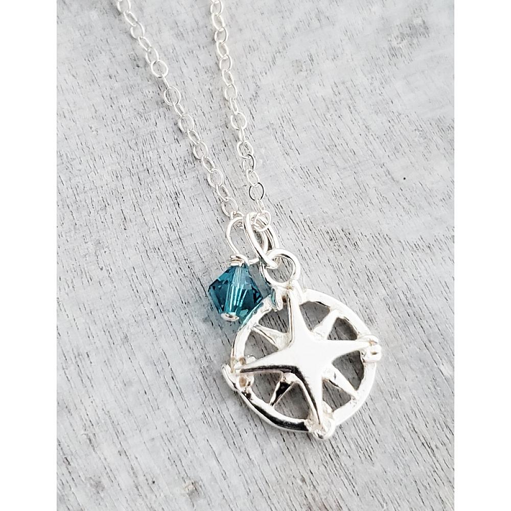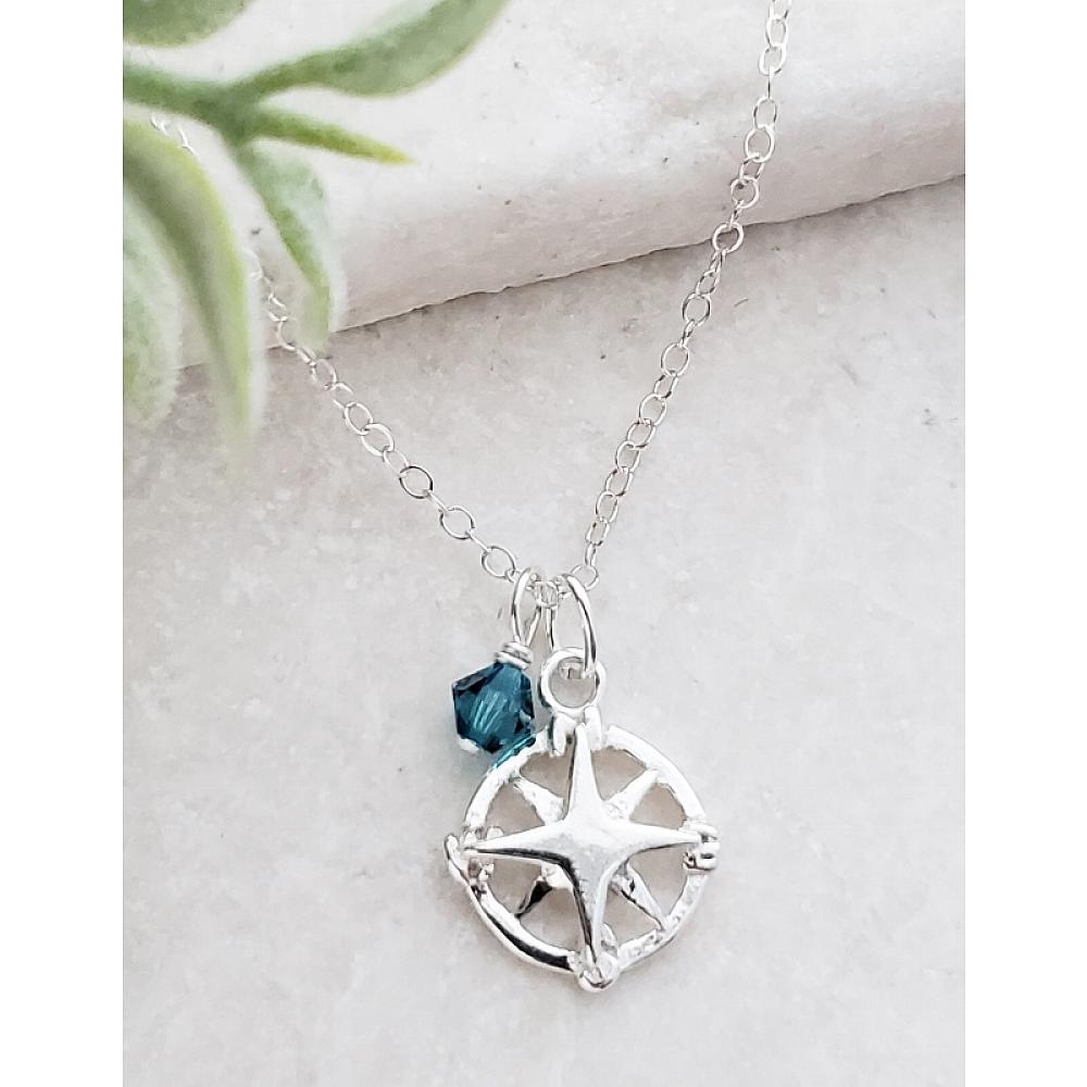 Enjoy the journey with this solid .925 sterling silver compass charm with genuine European crystal in indicolite blue.