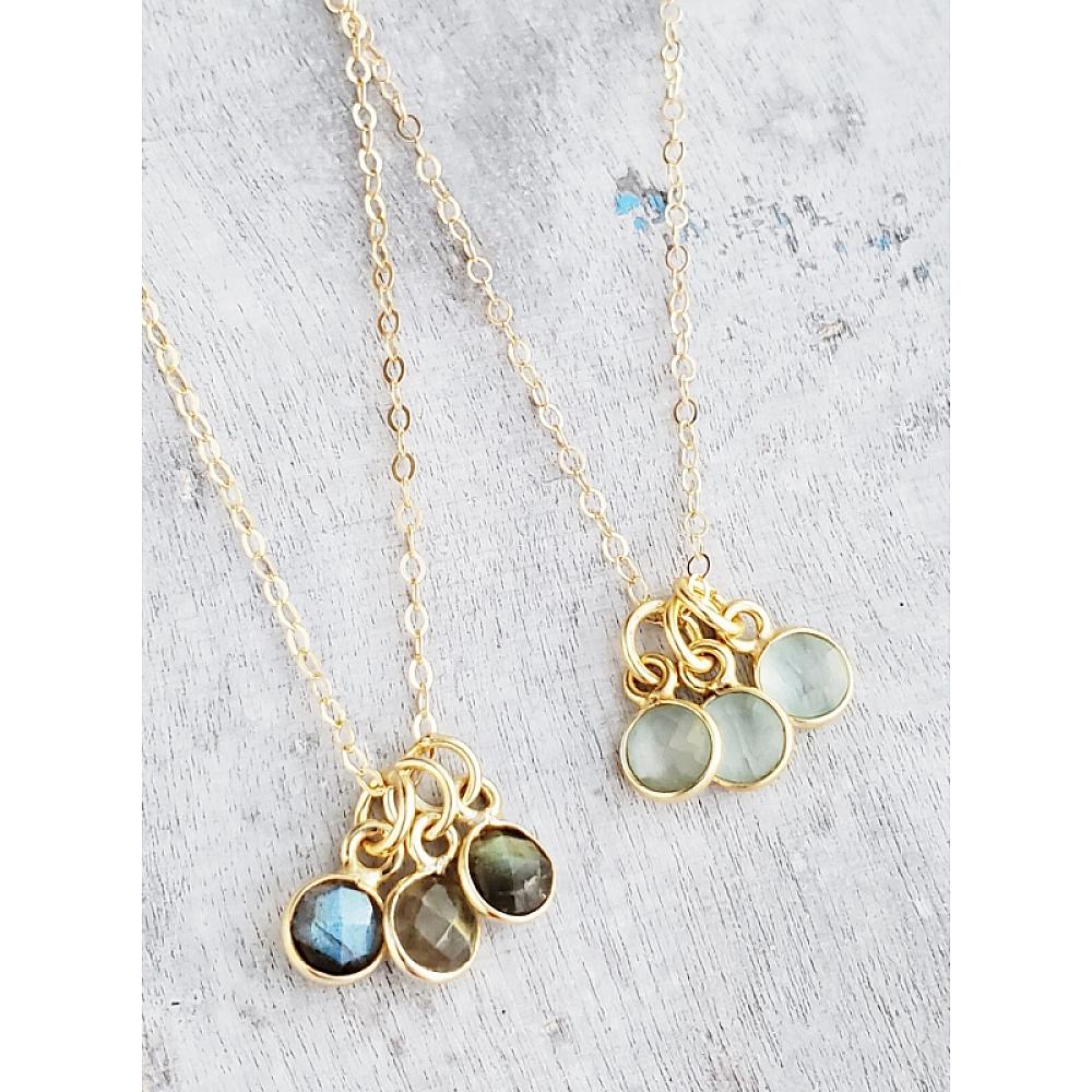 Enjoy the beauty of gemstones! These vermeil gold bezel gemstone cluster trio necklace are simple yet elegant for everyday wear. Great for layering or wear by itself.