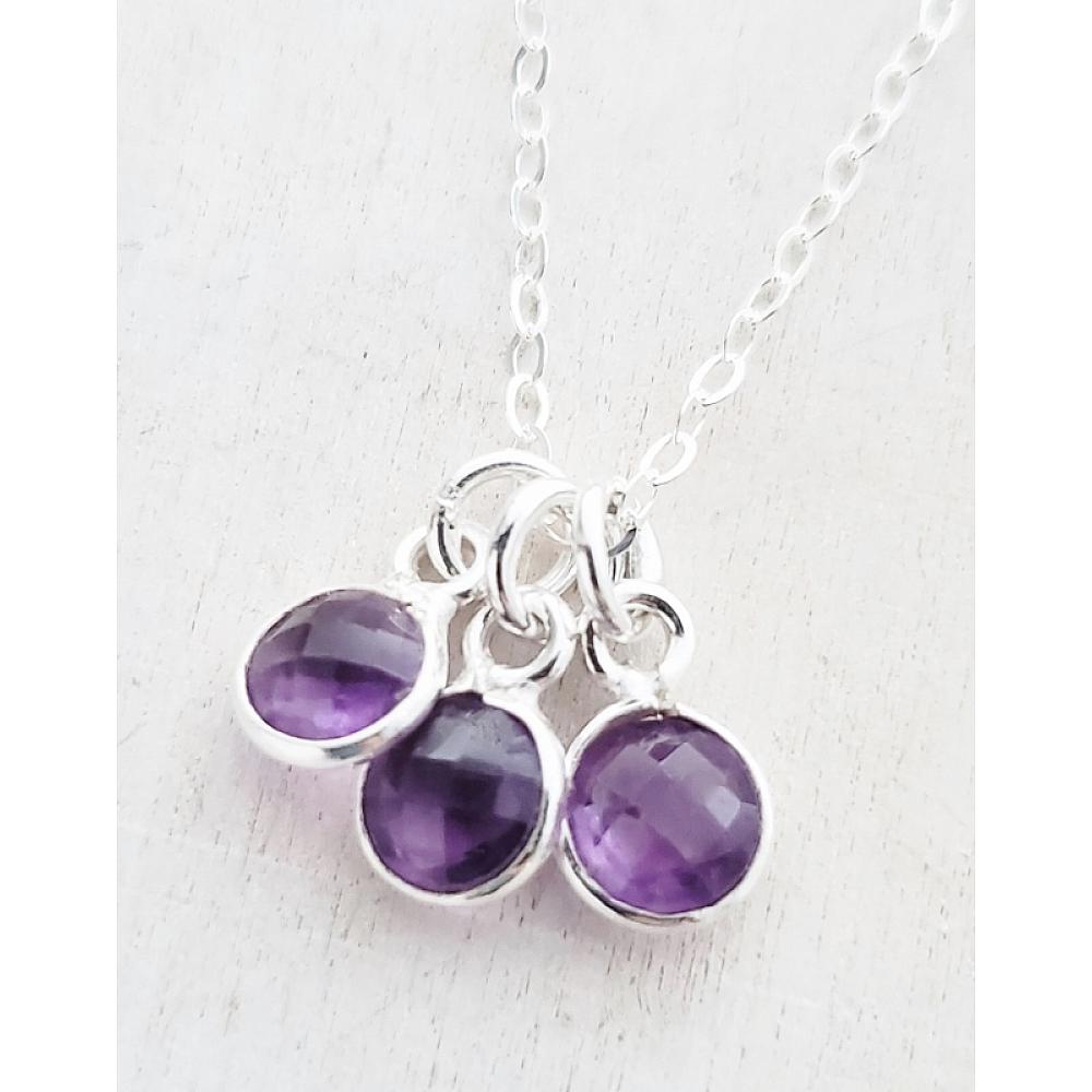 Silver Gemstone Cluster Trio Necklace - Amethyst Silver Gemstone Cluster Trio Necklace - Amethyst Silver Gemstone Cluster Trio Necklace - Amethyst