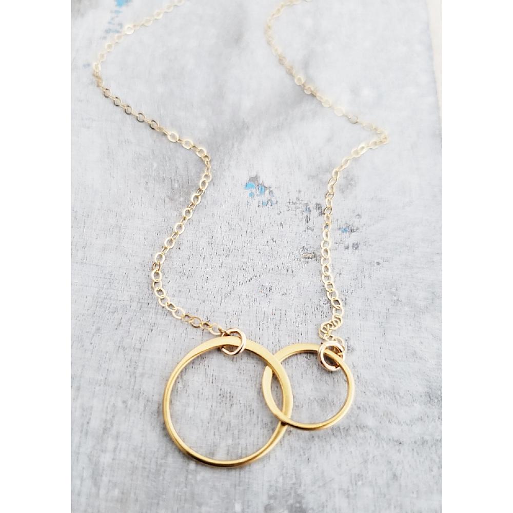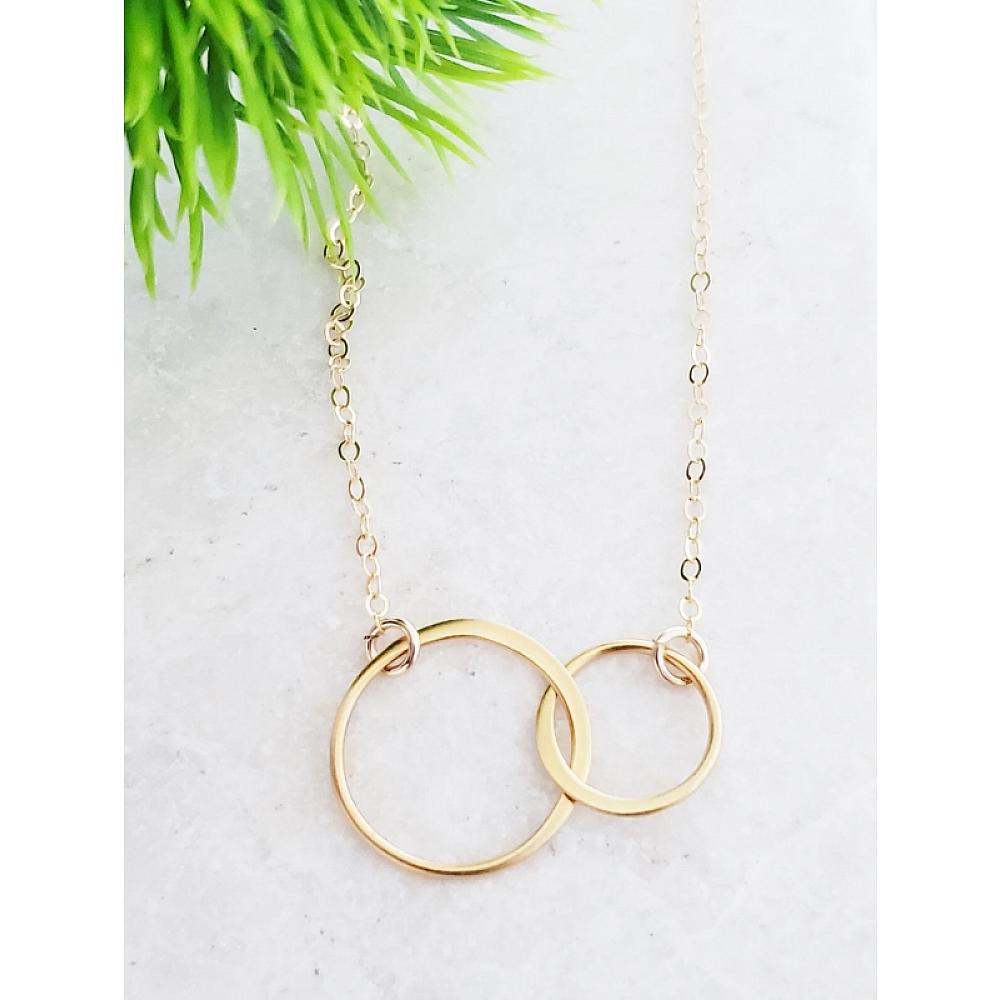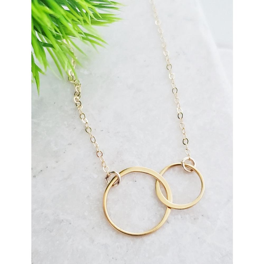 Sweet and Simple Necklace. These beautiful necklace with two intertwined circle links are made of gold over .925 sterling silver with delicate 16" 14K gold-filled cable chain with spring clasp. Wear it alone or mix and match with your favorite necklace.