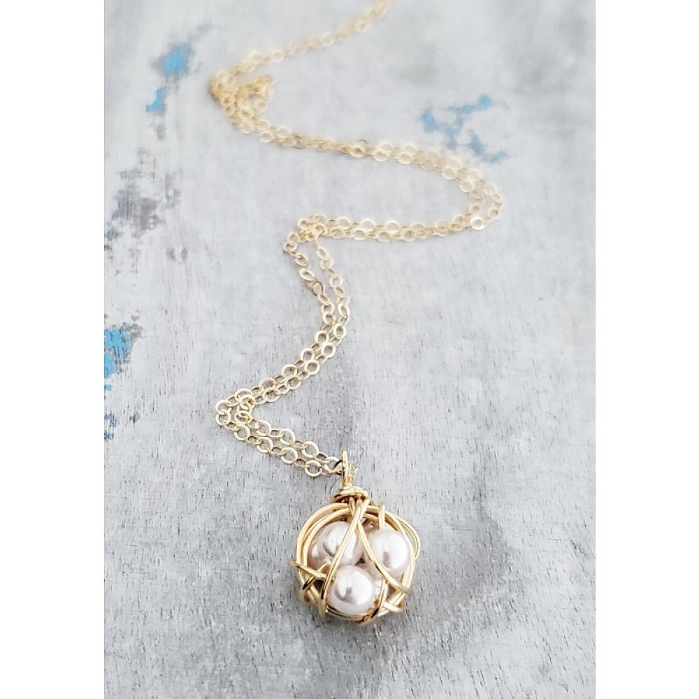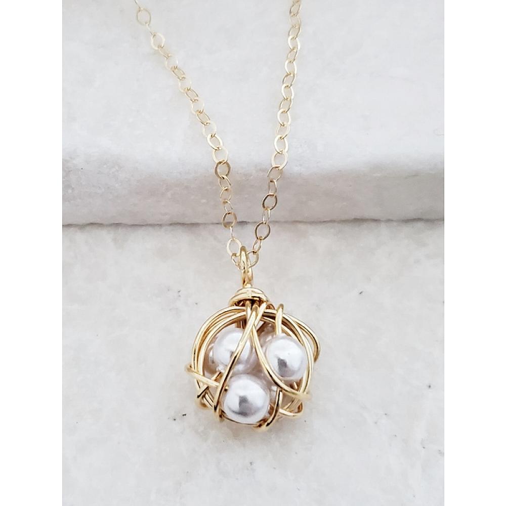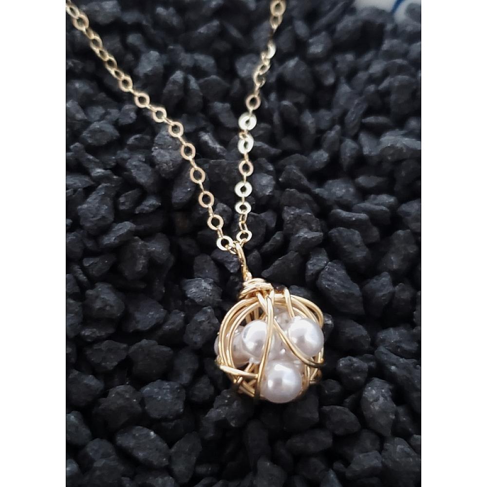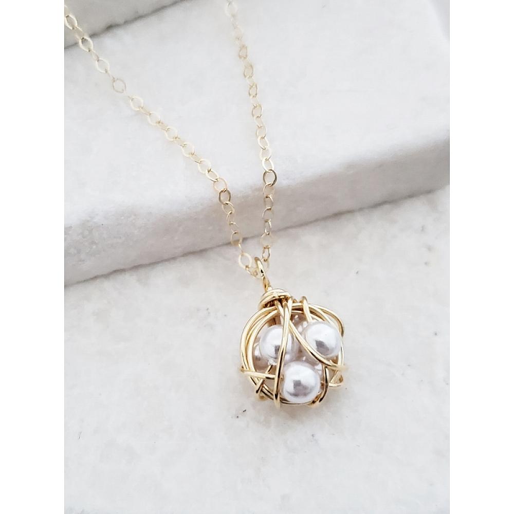 Absolute Elegance. These necklace features 6 small faux pearls in white made into a nest ball. The dainty 14k gold-filled chain adds a perfect touch to this piece.
