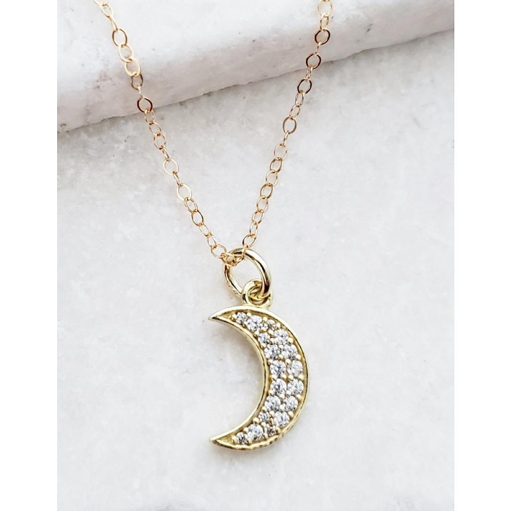 Add a little sparkle to your jewelry collection with these sparkly CZ crescent moon necklace made in gold over sterling silver charm with 14K gold-filled cable chain.