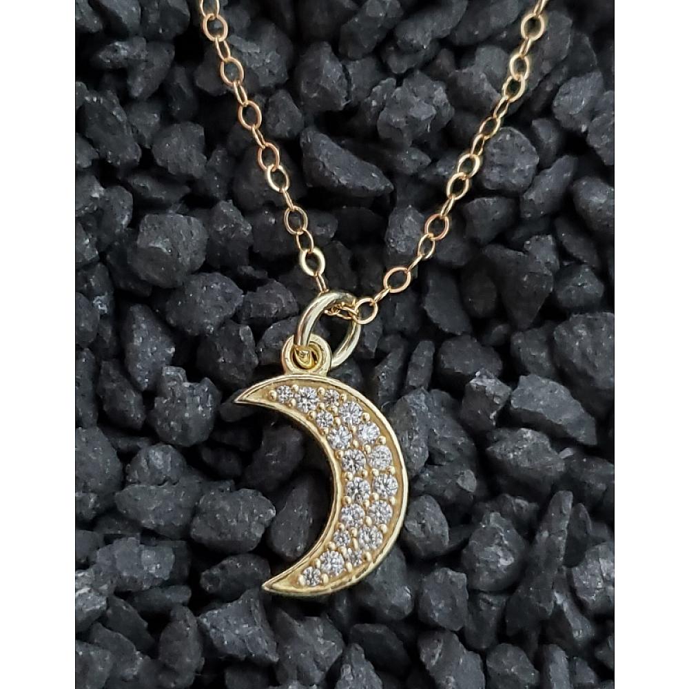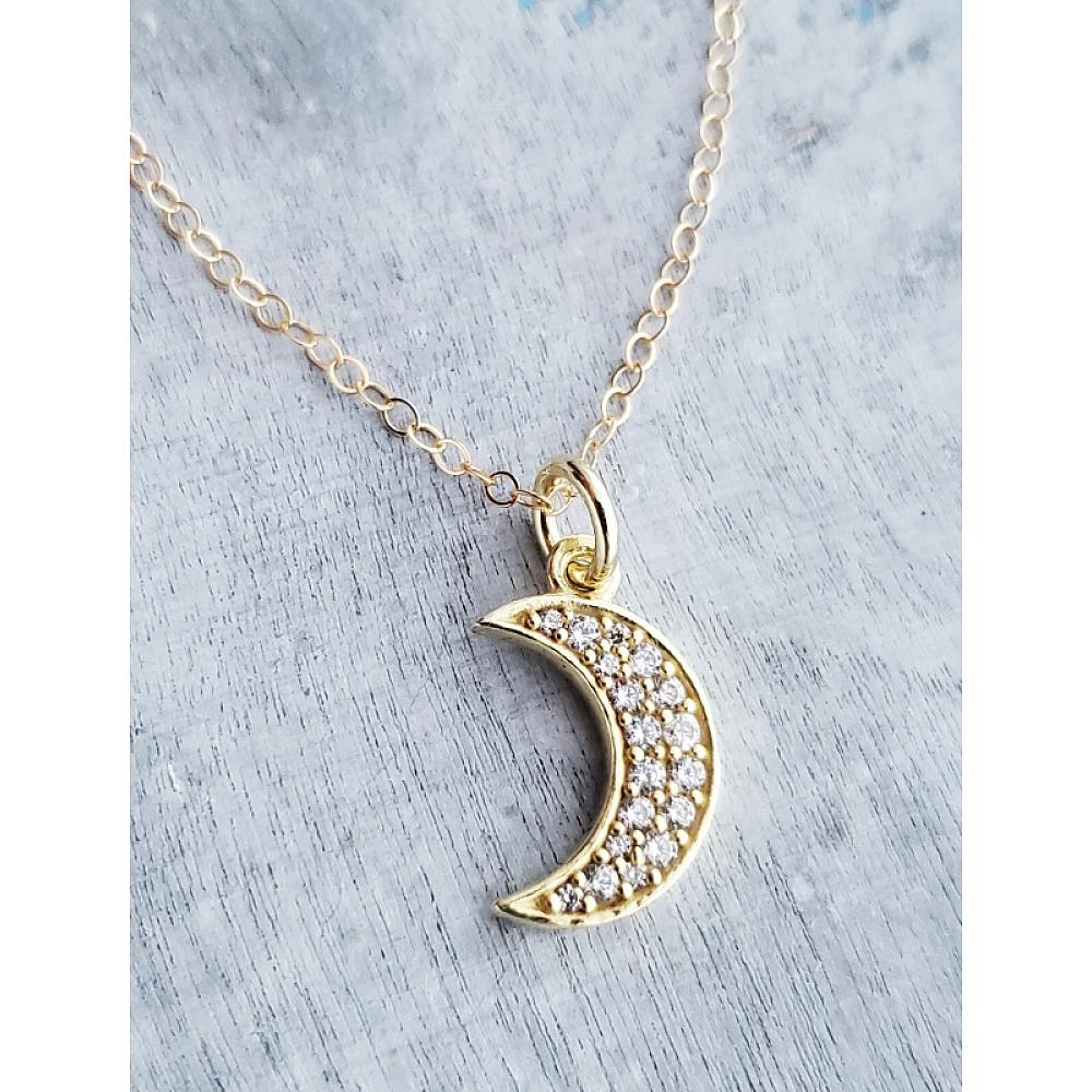 Vermeil Gold CZ Pave Crescent Moon Necklace Vermeil Gold CZ Pave Crescent Moon Necklace Vermeil Gold CZ Pave Crescent Moon Necklace