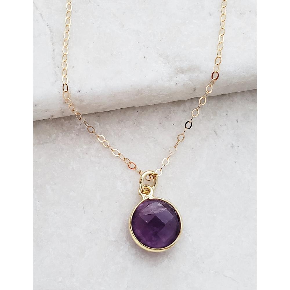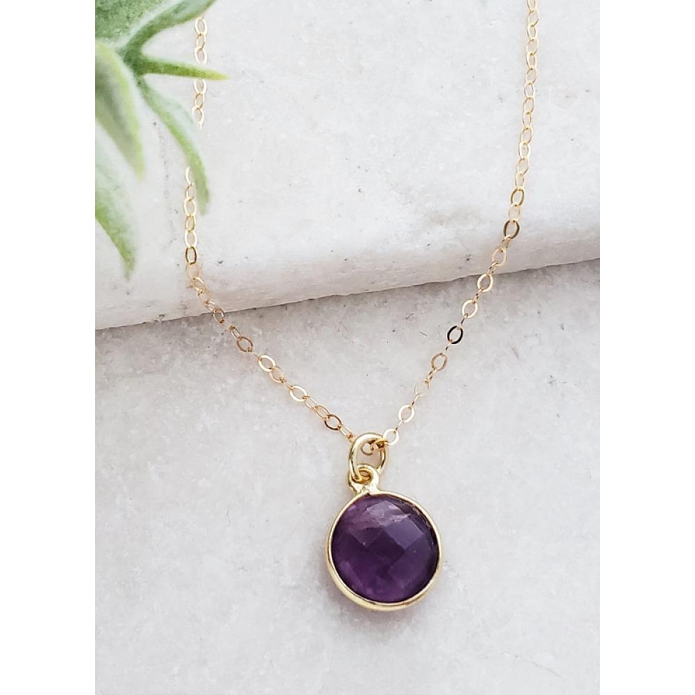The allure of amethyst! These vermeil gold round bezel gemstone necklace are simple yet elegant for everyday wear. Great for layering or wear by itself.