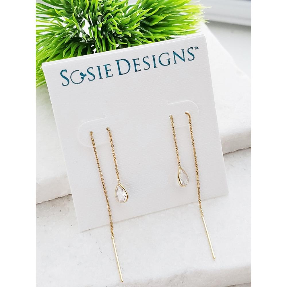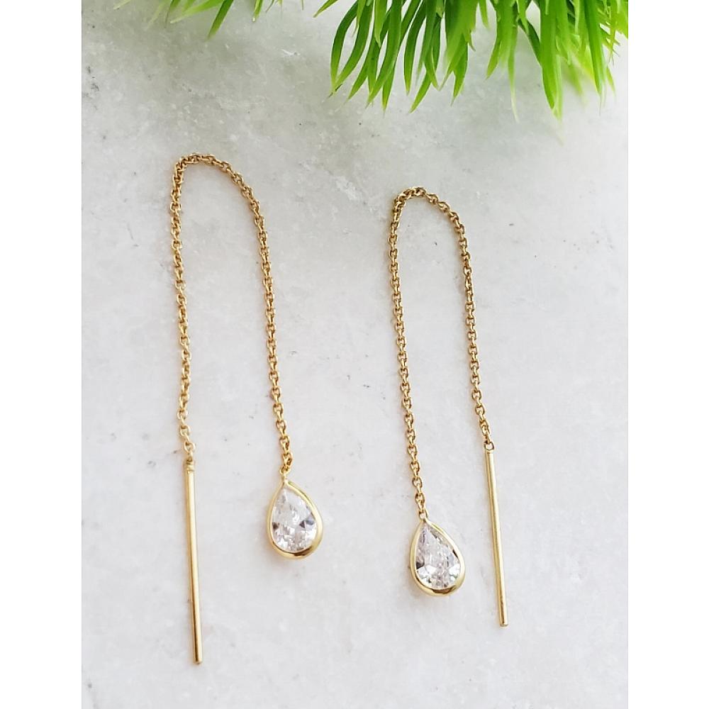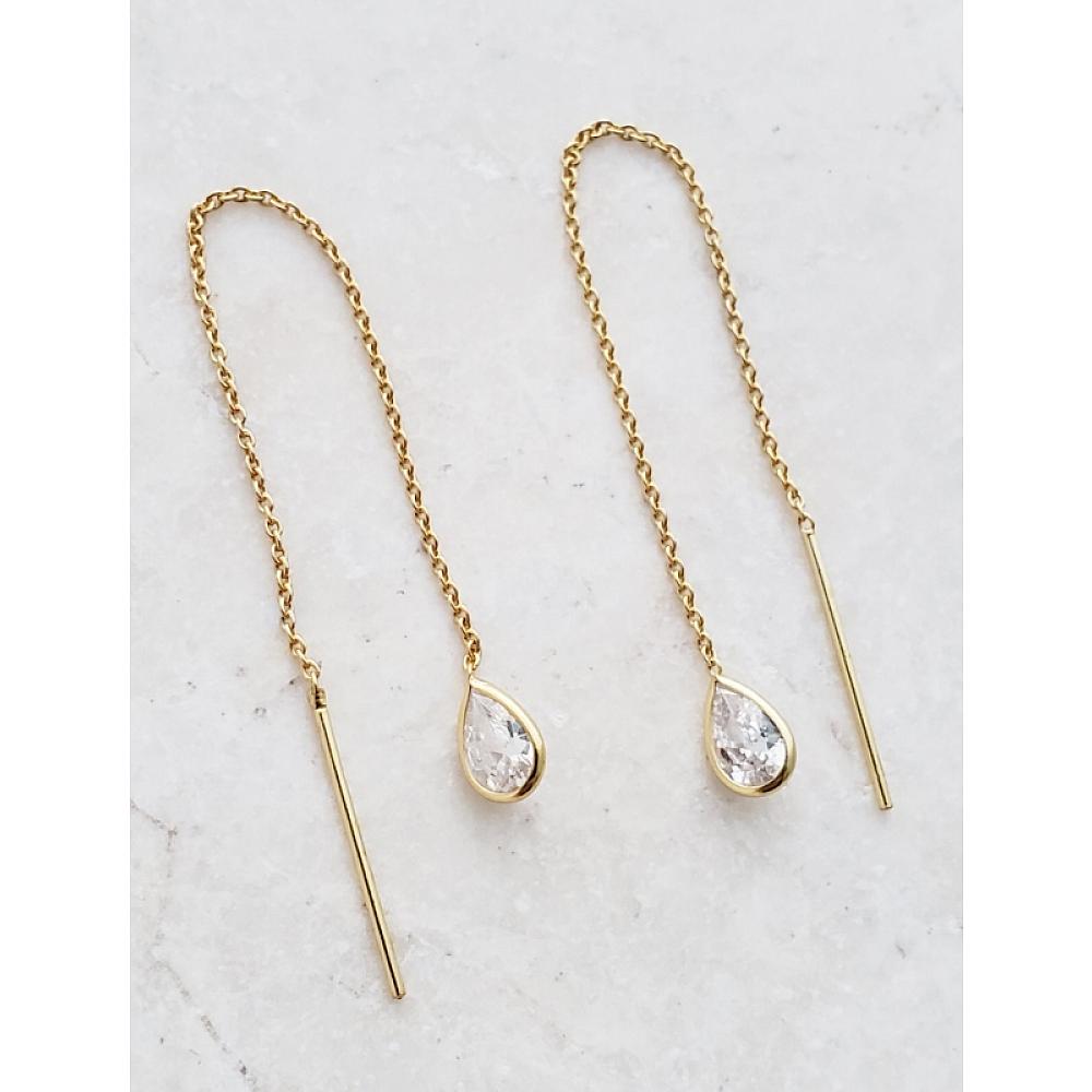 Add a chic accent to your wardrobe with these beautiful bezel crystal pear shape threader earrings in clear color. Stylish yet so classic for everyday wear.