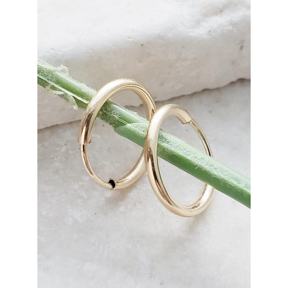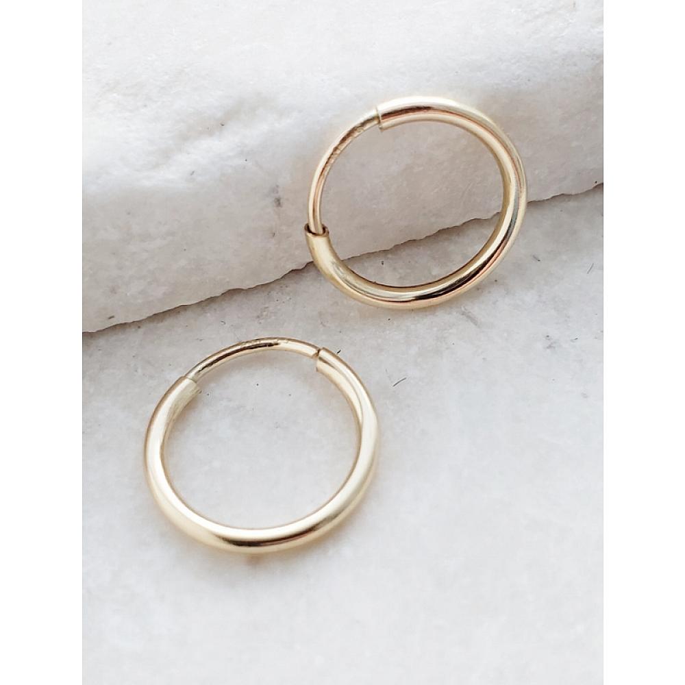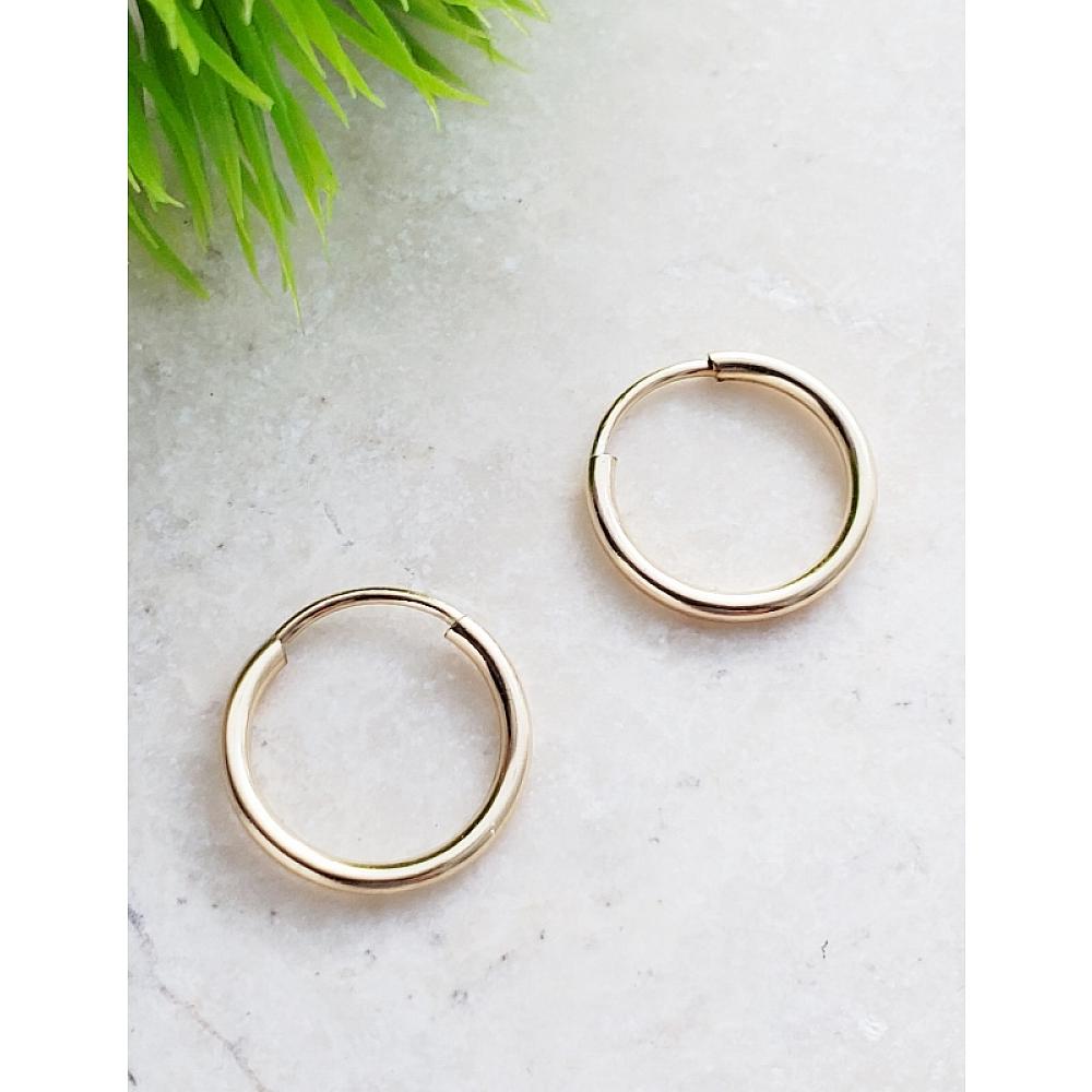 Trendy and In Style! These lovely tiny huggie hoops earrings in 14k gold-filled endless hoops earrings in 12 mm size makes accessorizing so effortless. Great for everyday wear for work or fun.