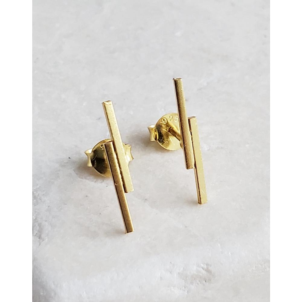 Modern Minimalist. These minimalist double line stud earrings are made of gold over .925 sterling silver great for everyday earrings! These dainty studs are simple yet stylish and full of flair.