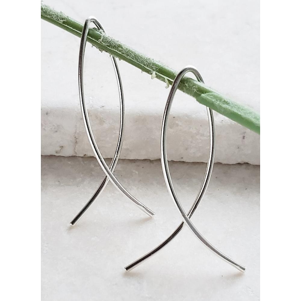Minimalist Boho Earrings. These simple threader open hoop earrings are perfect for any occasions. Made with .925 sterling silver infinity wishbone threader hoops are lightweight, minimalist and easy to wear.