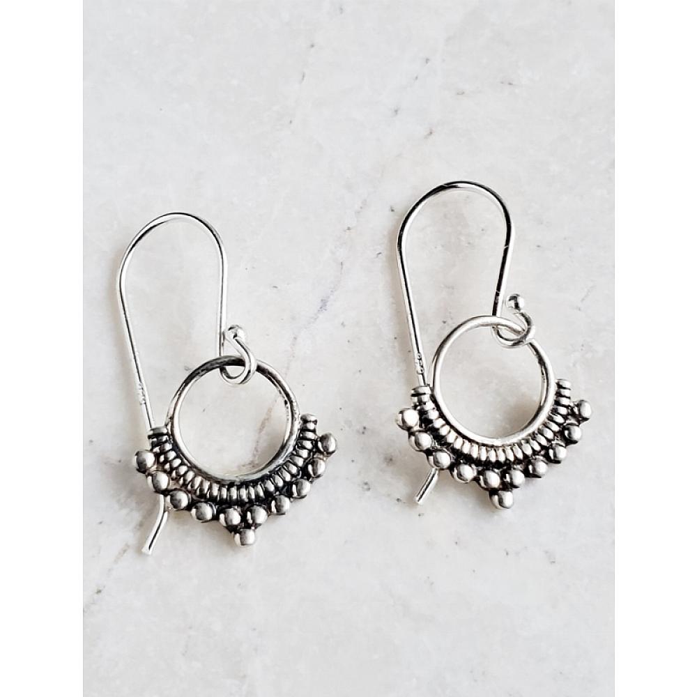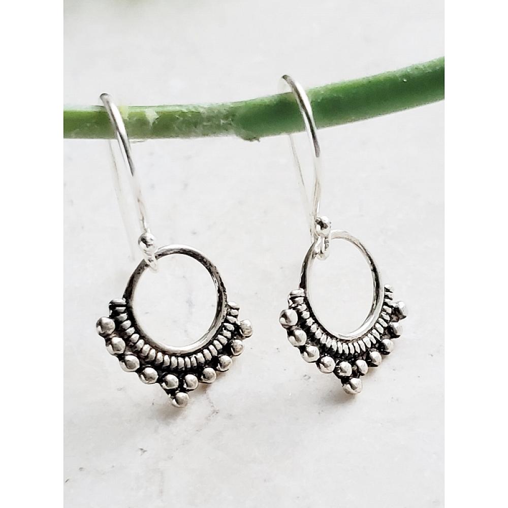 Boho Style. These earrings features oxidized Balinese .925 sterling silver circle dangle. Versatile and great for casual everyday earrings.