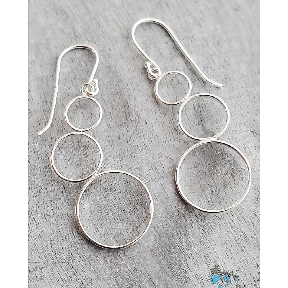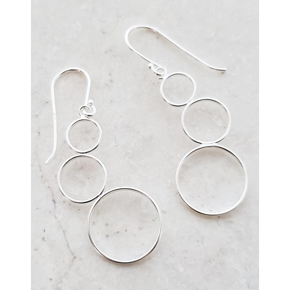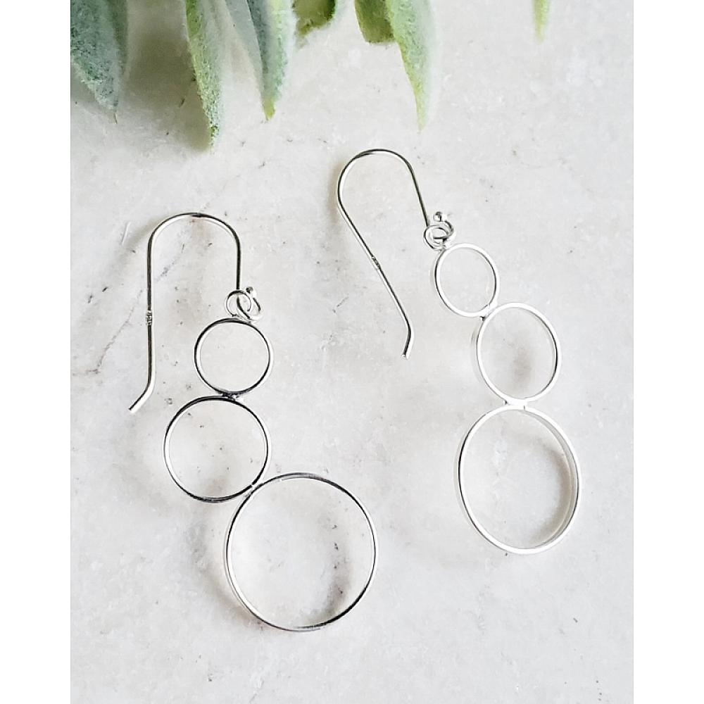 Modern Minimalist! These multiple cluster flattened circles in .925 sterling silver come in variety of sizes to create a cascading flow. Sophisticated and lightweight bubble silver earrings yet so modern.