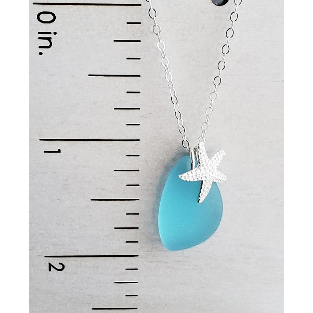 Get Your Beach Style On! Explore the seaside with these beach worthy accessory in sterling silver with cultured eco sea glass pebble adorned with detailed small starfish made in .925 sterling silver. Comes with 18" Sterling silver cable chain with spring clasp.