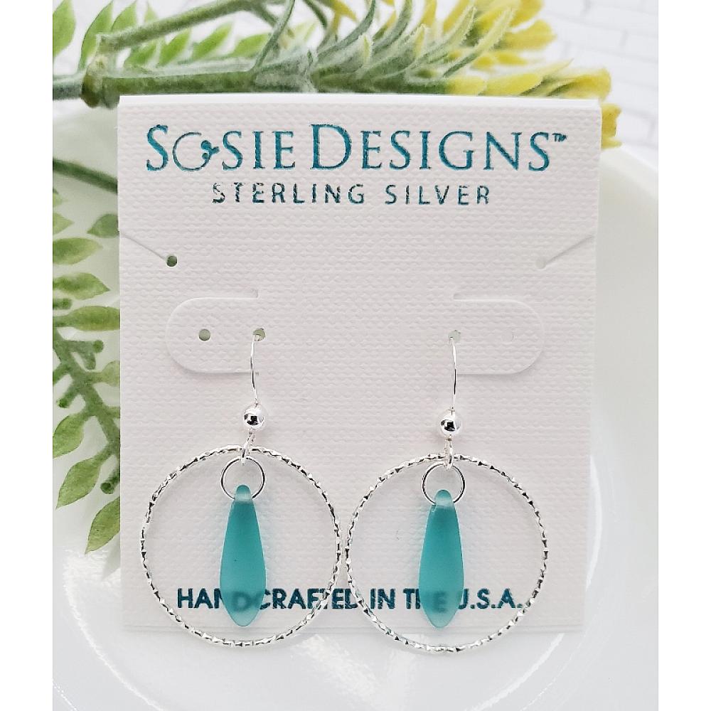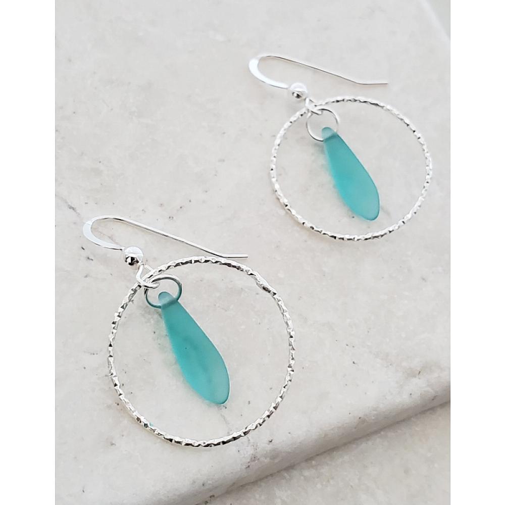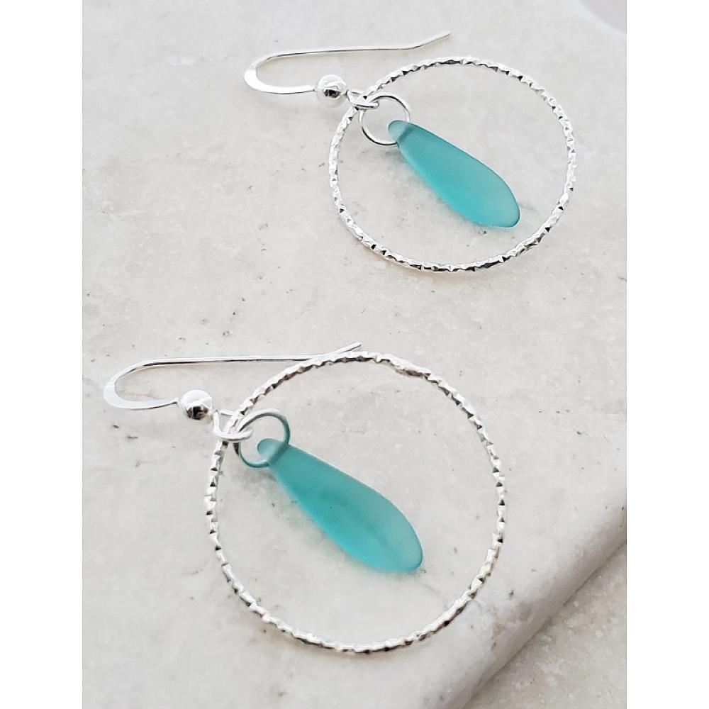 Embrace the Sea! These breezy sterling silver eco sea glass dagger earrings features a diamond cut hoops that sparkles! This earring is perfect gift for any beach gal on your list.