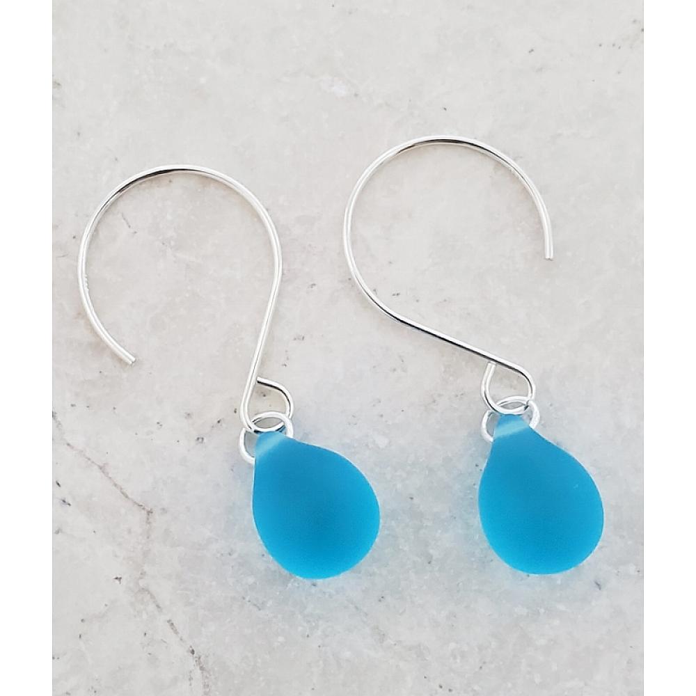 #1849-1 Silver Eco Sea Glass Sea Droplets Earrings - Turquoise