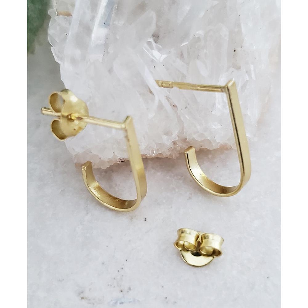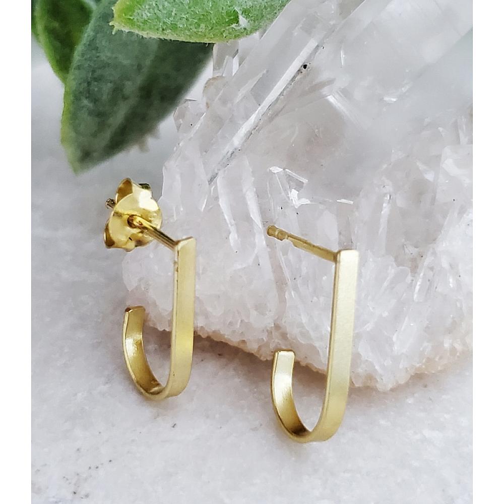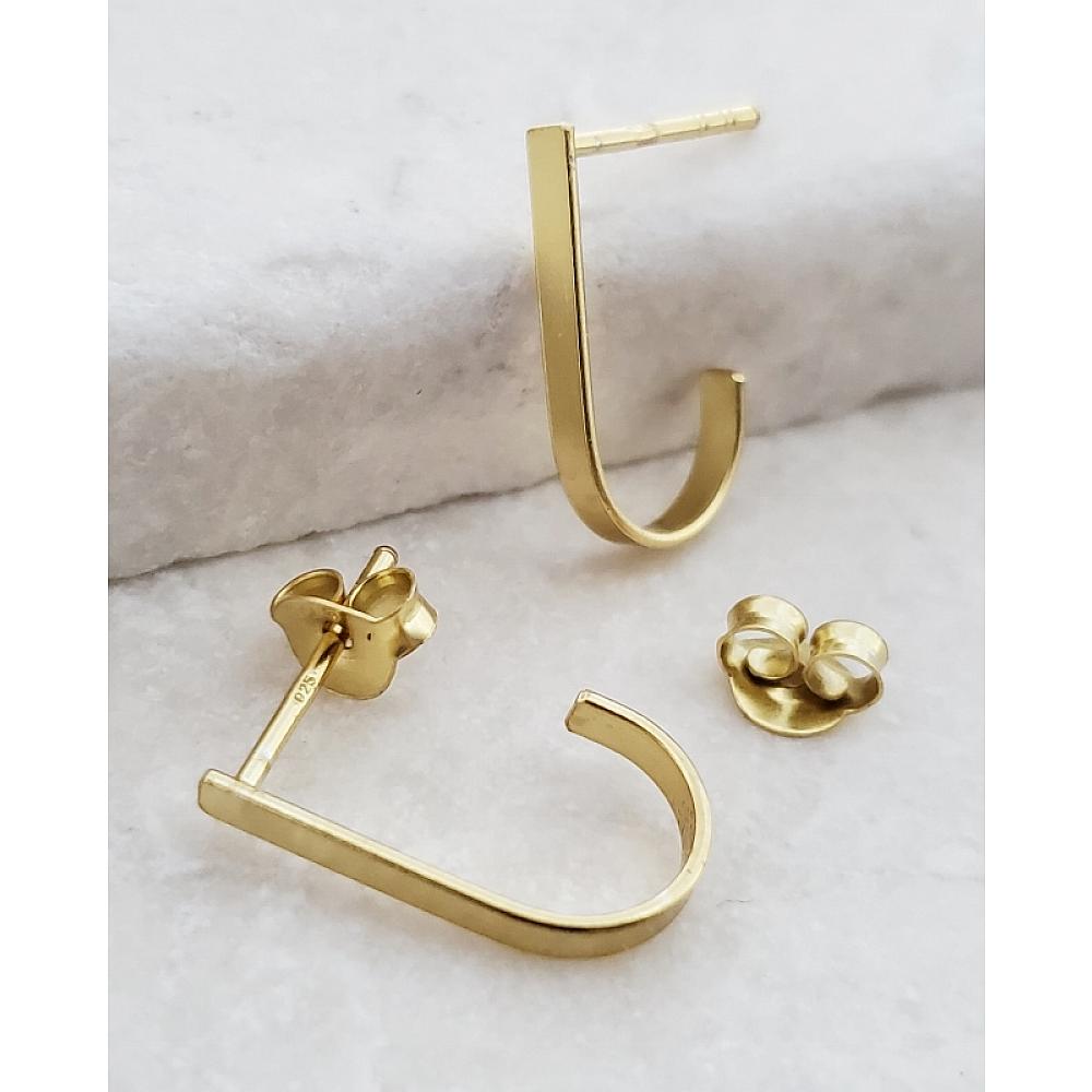Stylish Minimalist. Make this gold over sterling silver hook bar style studs your new treasured earrings! These dainty studs are simple yet stylish and chic.