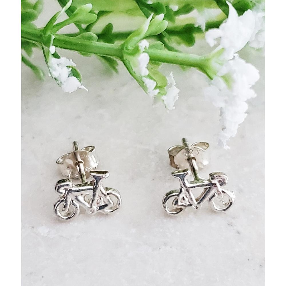 Outdoor Lover Faves. These sweet and dainty pair of bicycle stud earrings in .925 sterling silver adds a subtle whimsy to your jewelry collection.