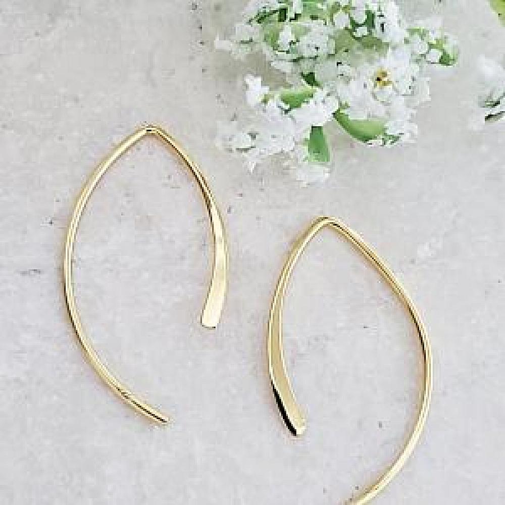 Update your look with these gold over sterling silver open wishbone hook earrings! These minimalist yet elegant earrings features a flatten side for an edgy look. Wires are lightweight for everyday wear.