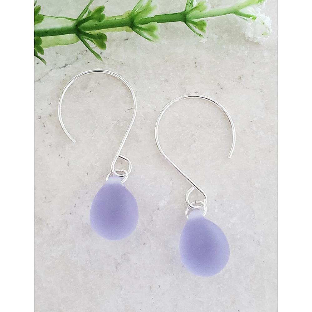 #1849-7 Silver Eco Sea Glass Sea Droplets Earrings - Periwinkle
