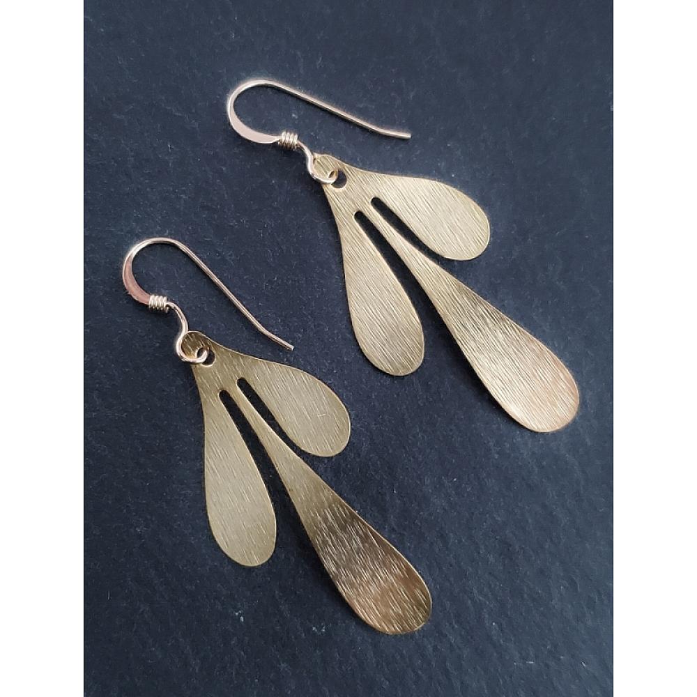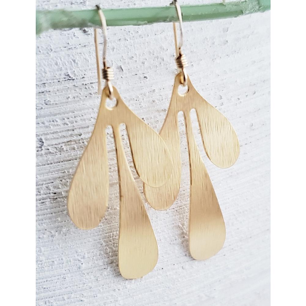 Get the Look! These matte gold geometric botanical leaf earrings are features brushed texture perfect for everyday statement earring!