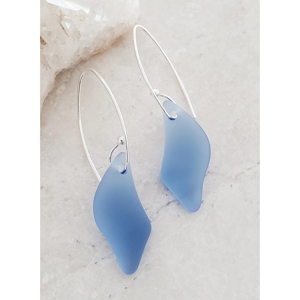 Effortless beach casual earrings! These fun yet elegant wavy shaped cultured sea glass earrings are lightweight and elegant.
