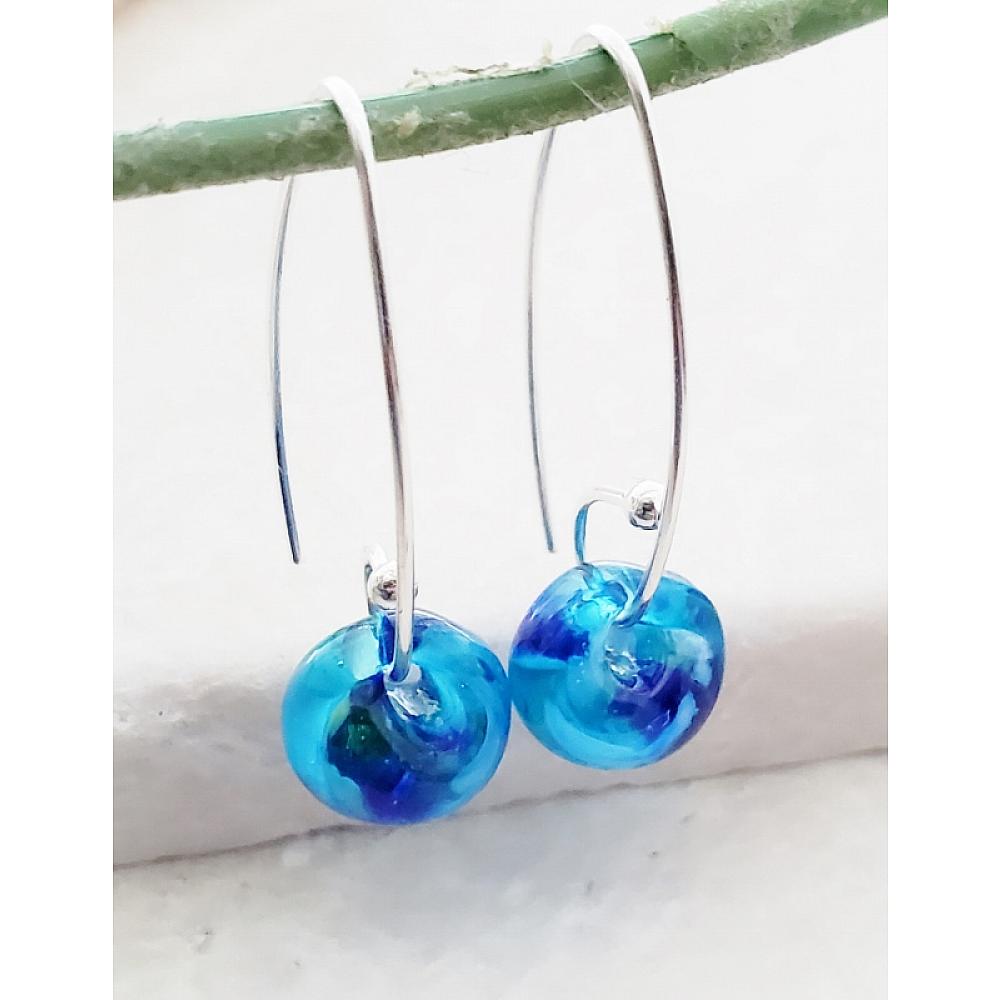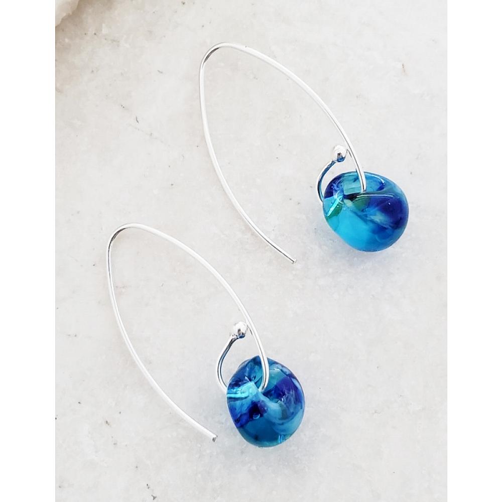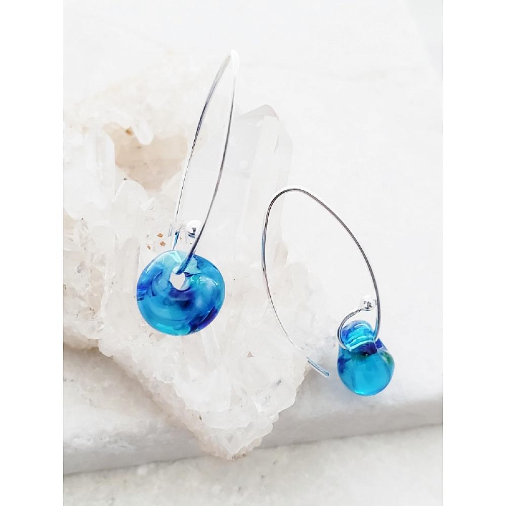Infuse any elegant ensemble with the classic look of these curled marquis earrings met with beautiful handmade lampwork drops. A classic combination of azure blue and silver.