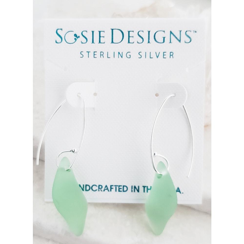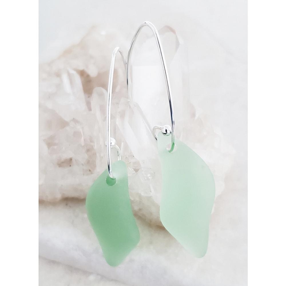 The eco cultured sea glass earrings are made with high-quality frosted glass that resembles ocean tumbled beach glass and comes in uniform shape and size.