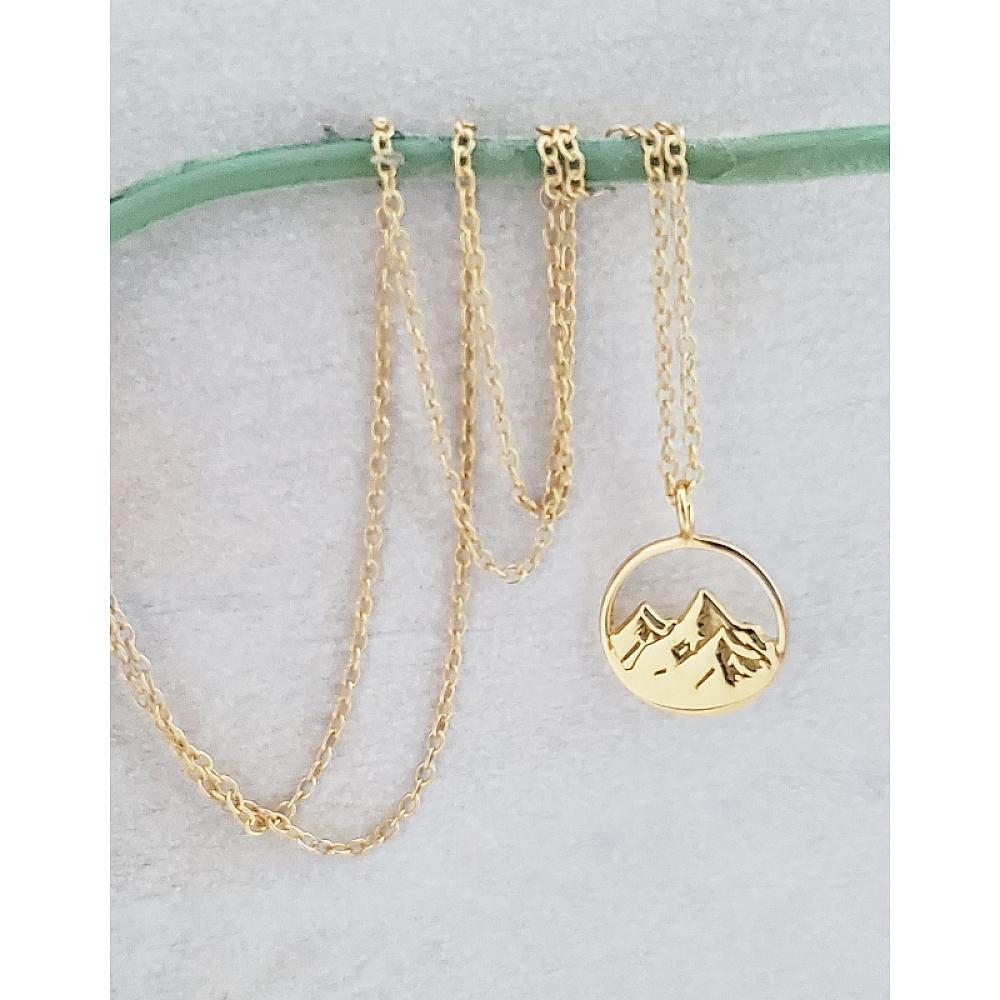 Nature Inspired! These delicate gold over .925 Sterling silver mountain range pendant necklace draws inspiration from nature with oxidized etched details. Wear it or give this fun necklace to remind you of the great outdoors!
