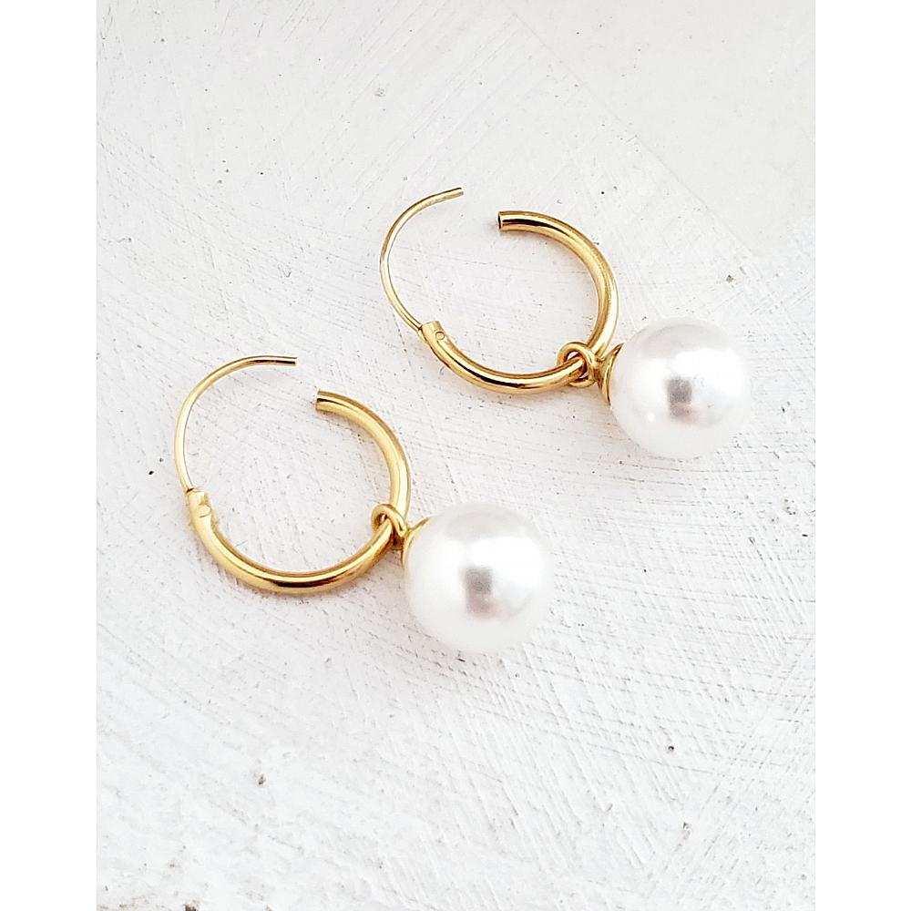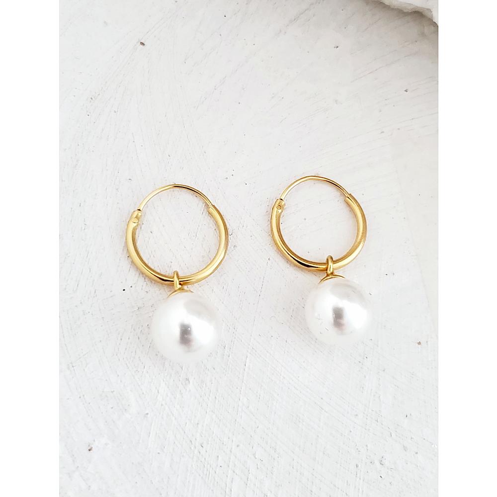 Elevate you look with these timeless yet contemporary elegant gold huggie hoops with crystal pearls. The simplicity of the design lends an effortless elegance that enhance your style for any occasions.