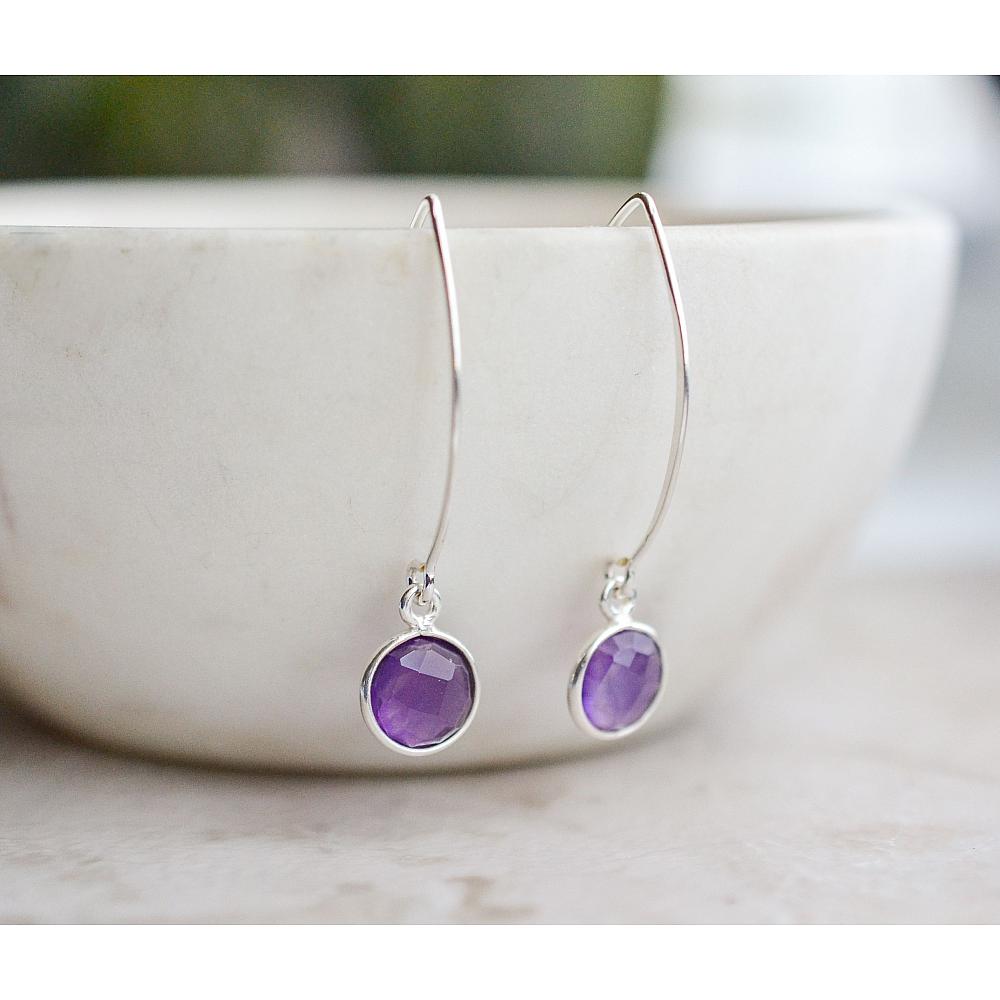 Infuse any elegant ensemble with the classic look of these .925 sterling silver marquis earrings with beautiful faceted round amethyst gemstones.