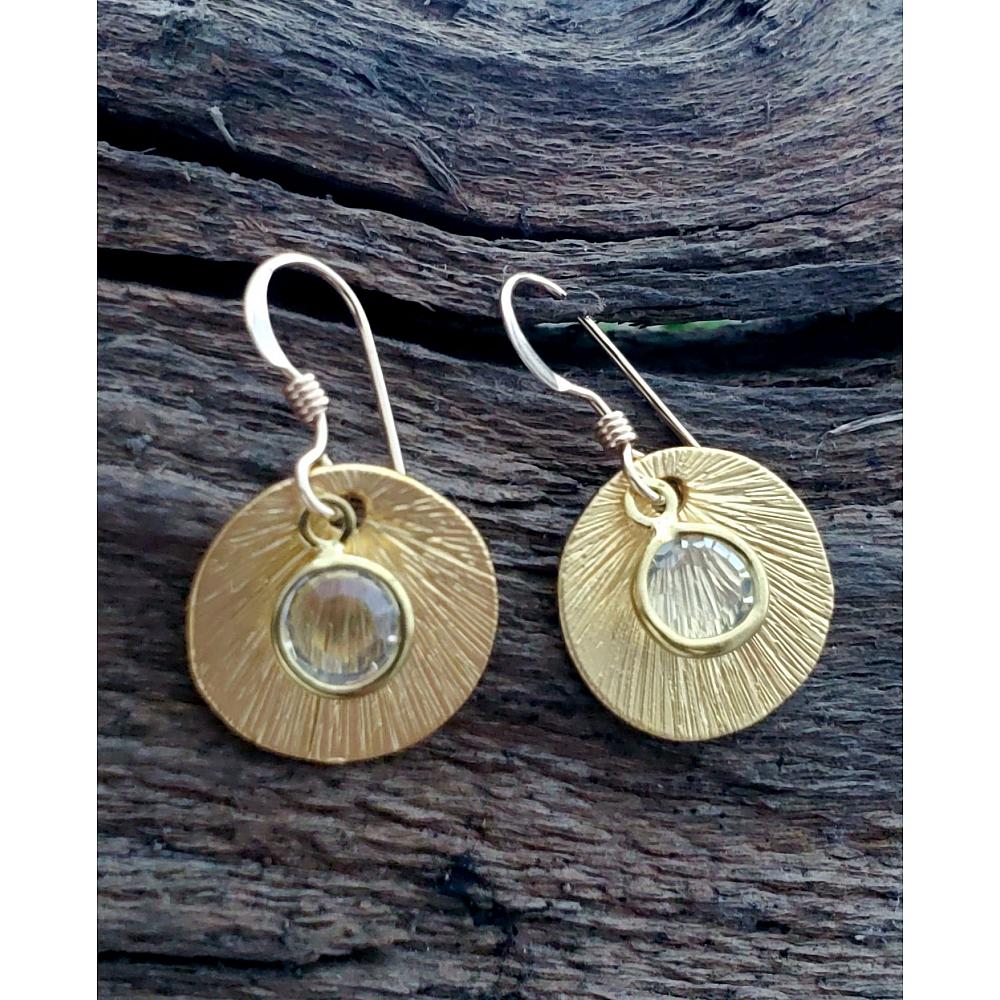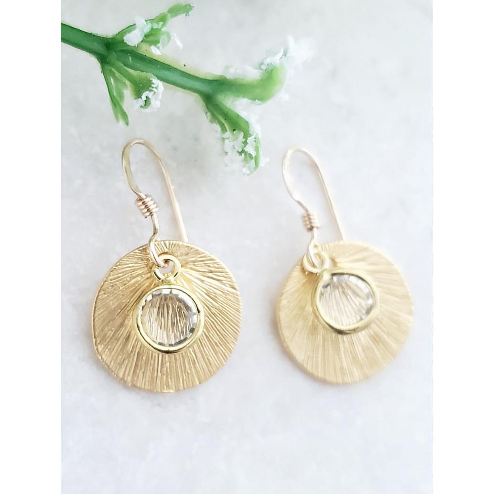 Matte Gold Brushed Crystal Reflections Earring - Clear