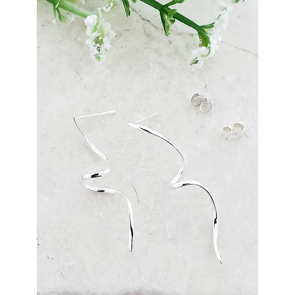 Silver Ribbon Twirl Studs (8x39mm)