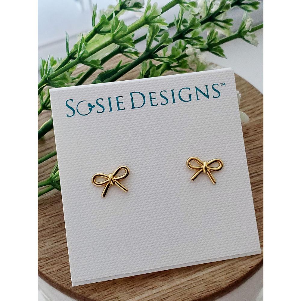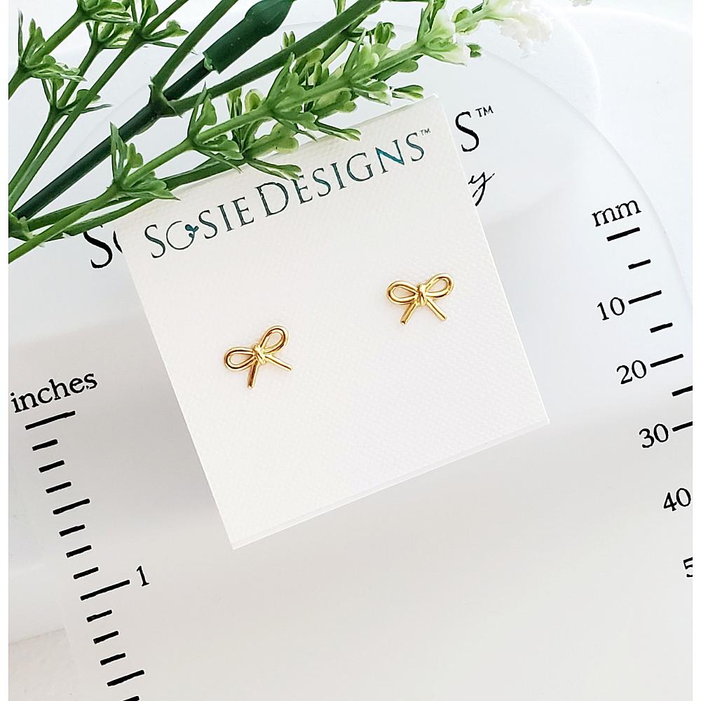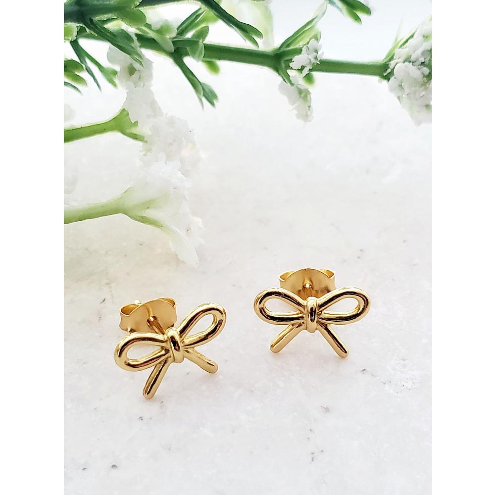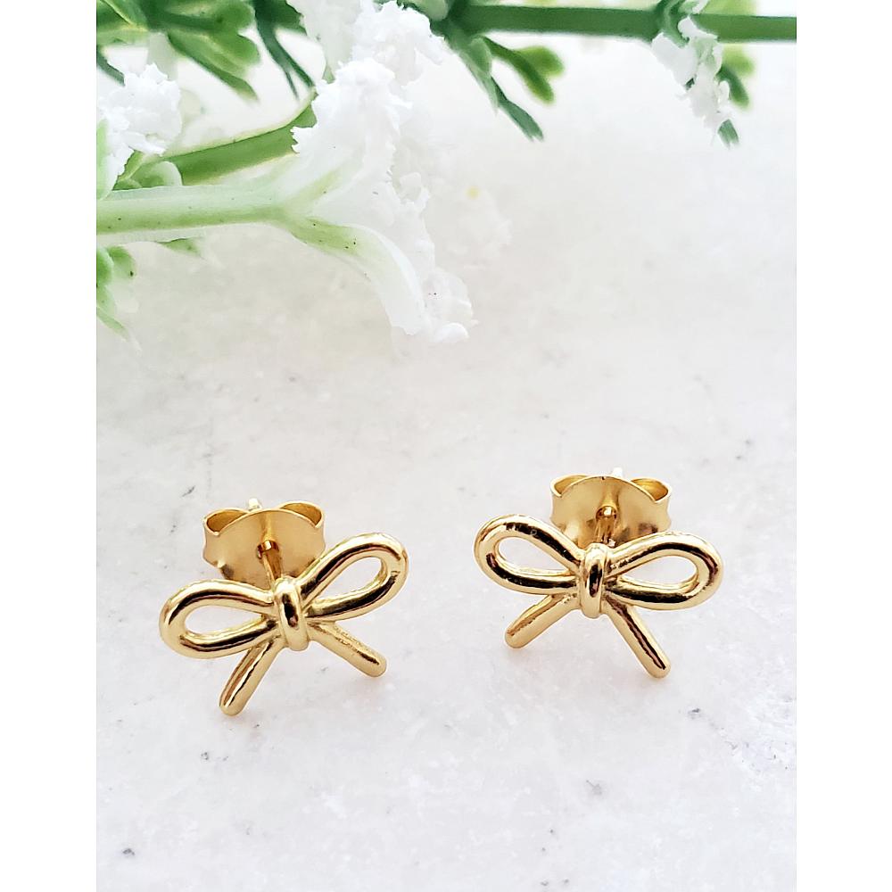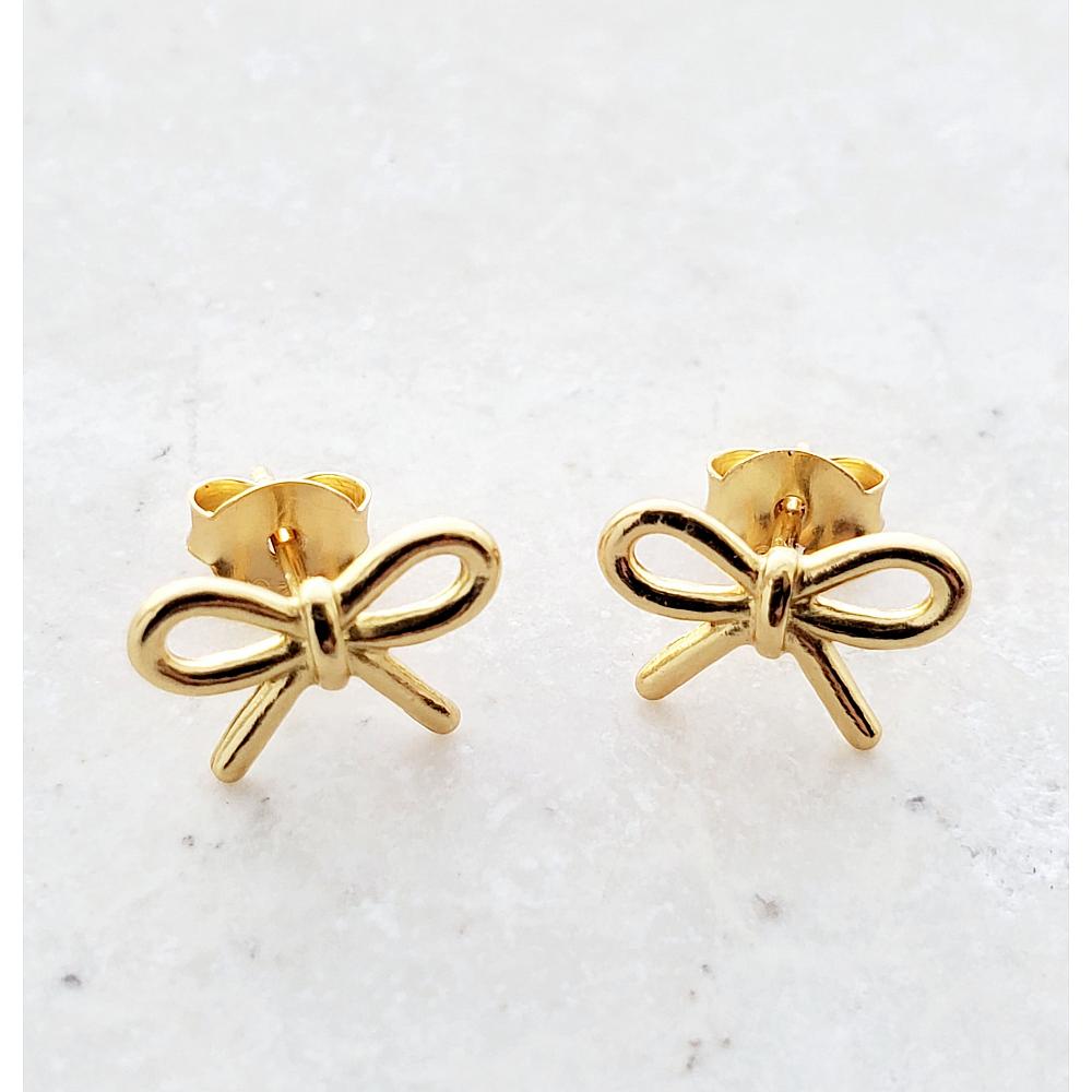 Gold Ribbon Bow Tie Studs