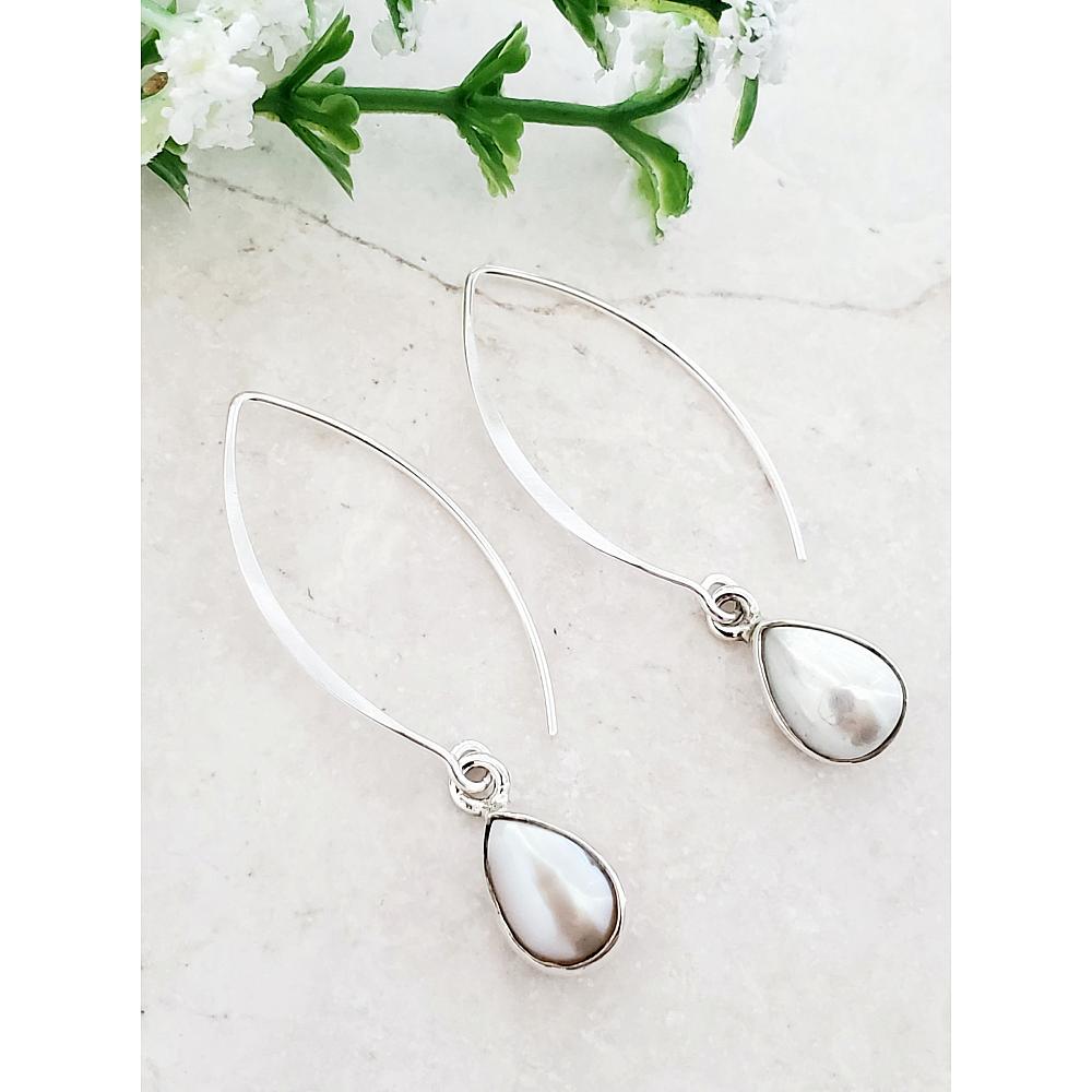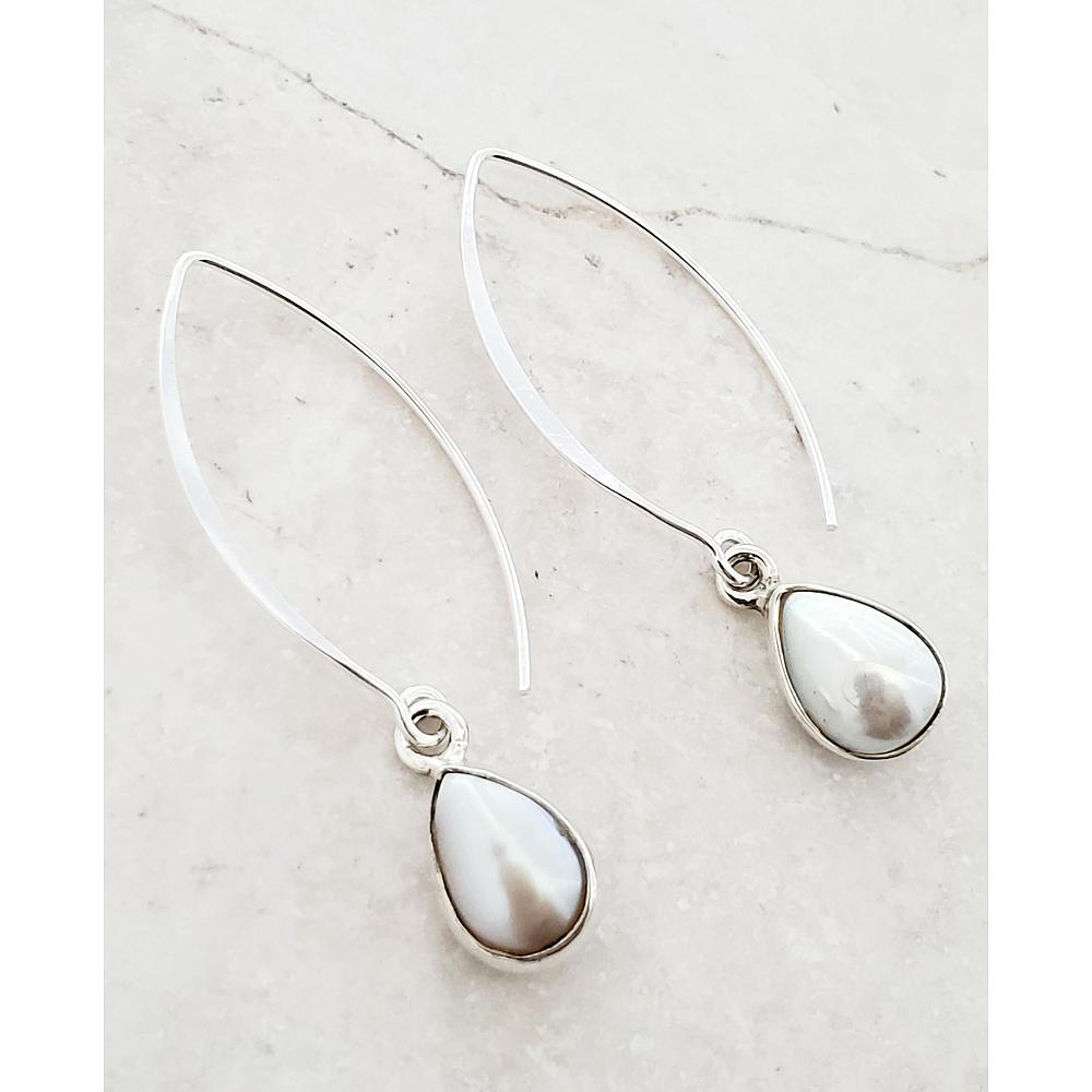 Sterling Silver Flat Marquis Bezeled Teardrop Earring - Pearl Sterling Silver Flat Marquis Bezeled Teardrop Earring - Pearl Sterling Silver Flat Marquis Bezeled Teardrop Earring - Pearl