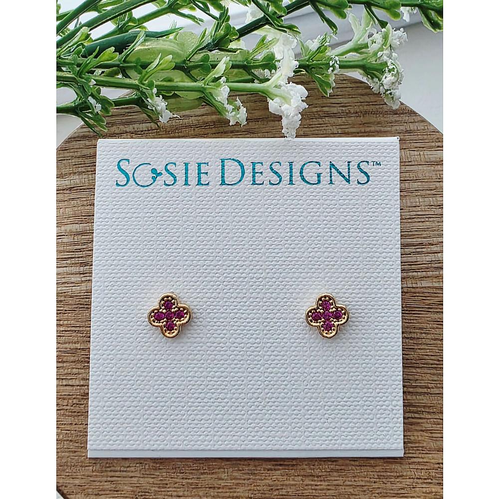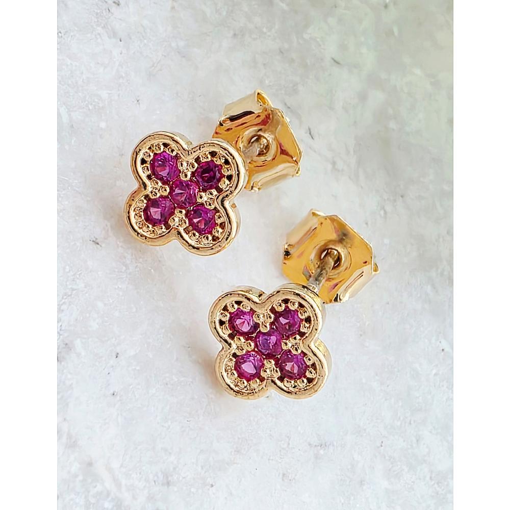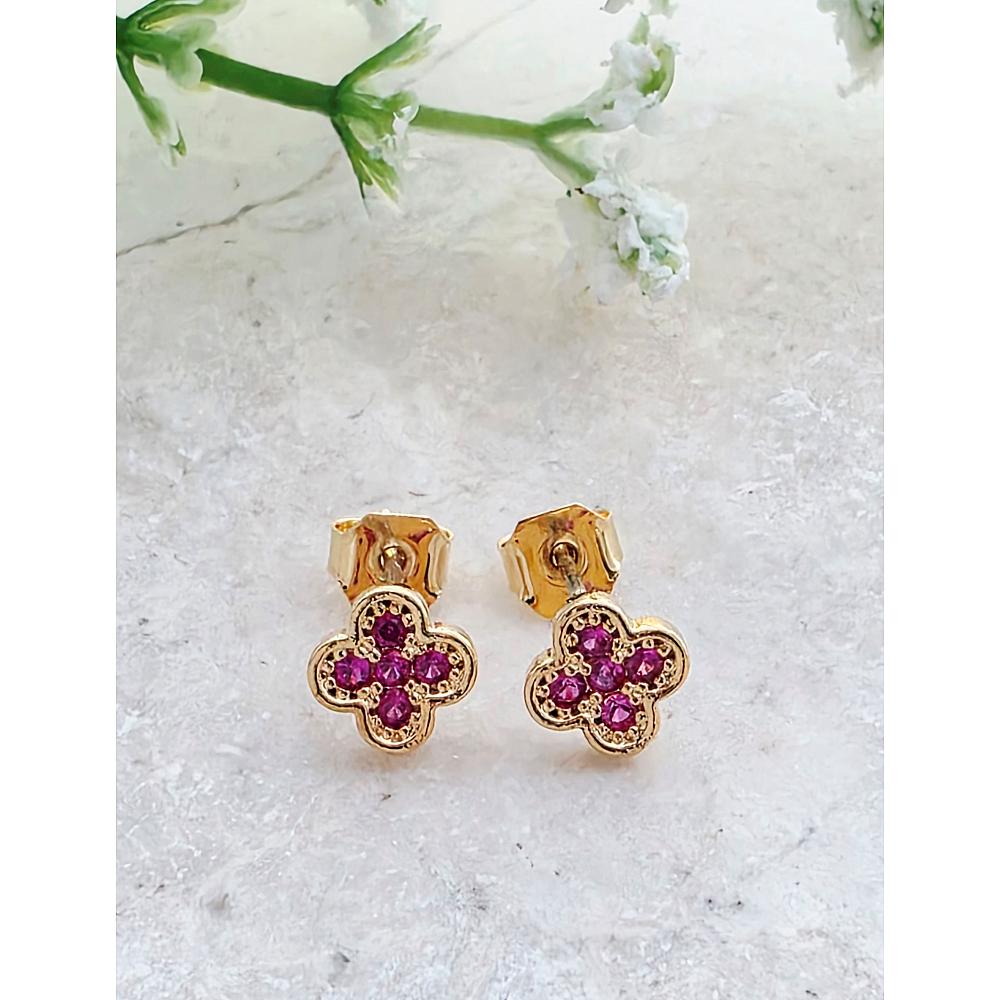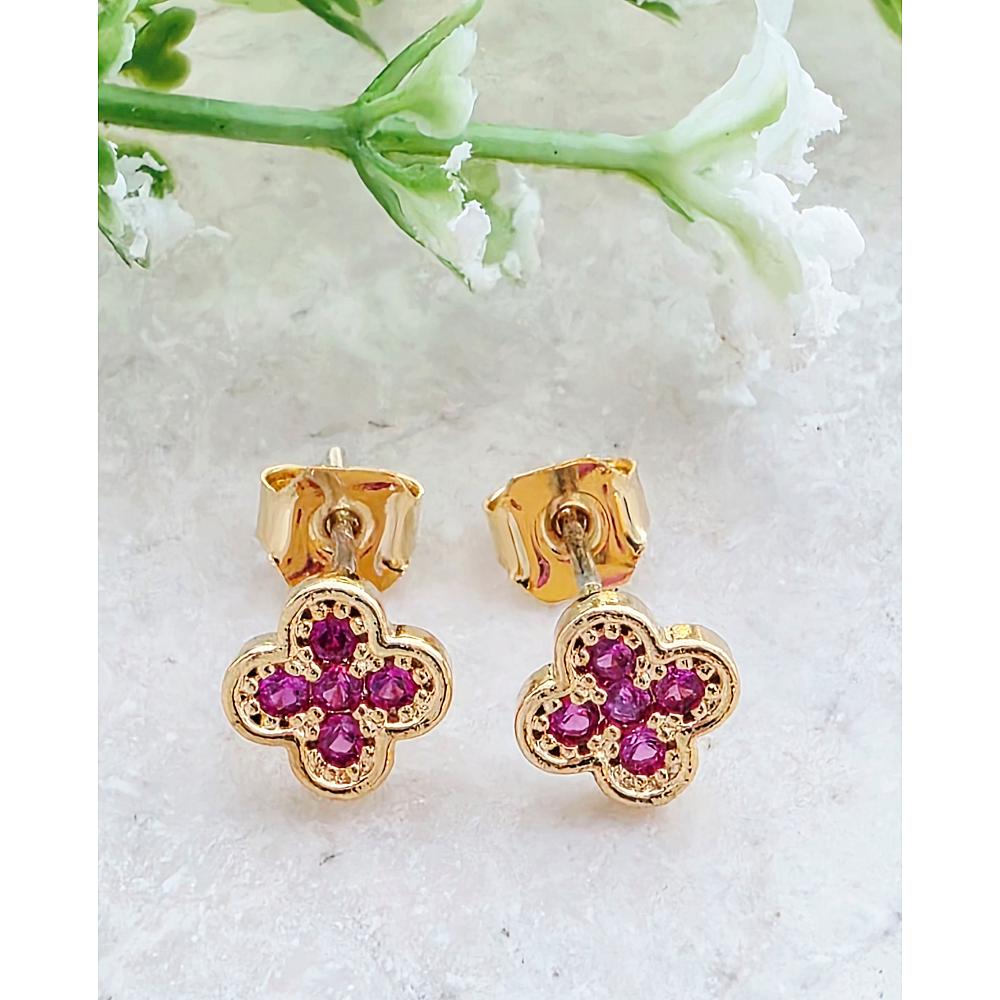 Add a little sparkle to your jewelry collection! These tiny gold clover CZ studs are just the right touch. These studs feature 7.2mm rose pink CZ, beautifully encased in gold plating.  These studs are perfect for any occasion, adding a touch of glamour and grace to your collection.